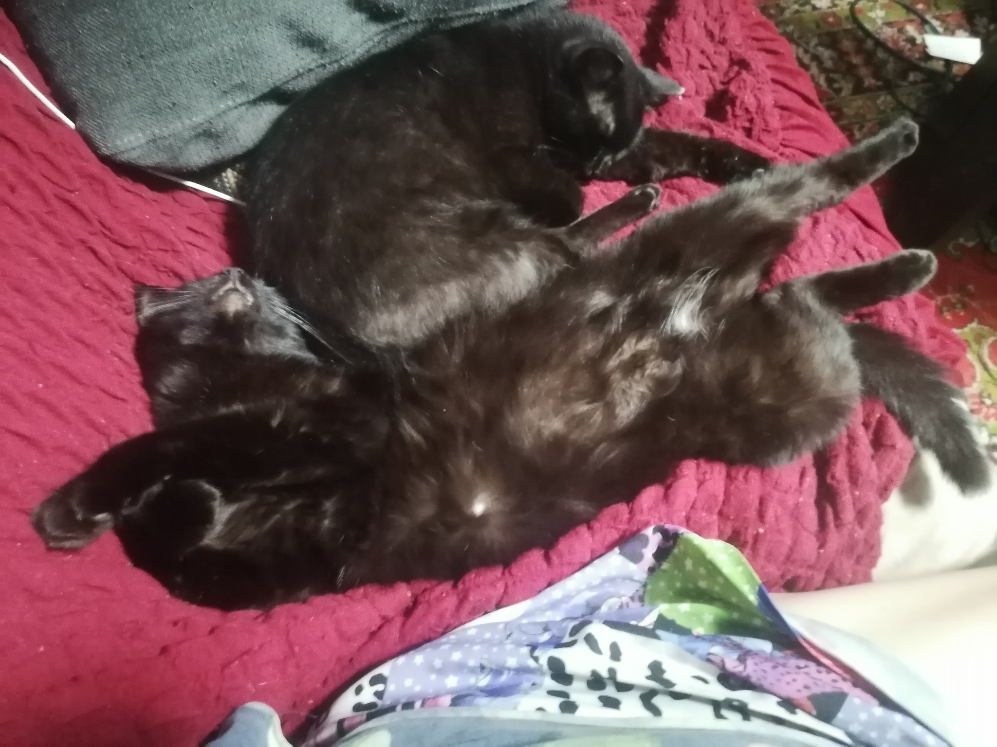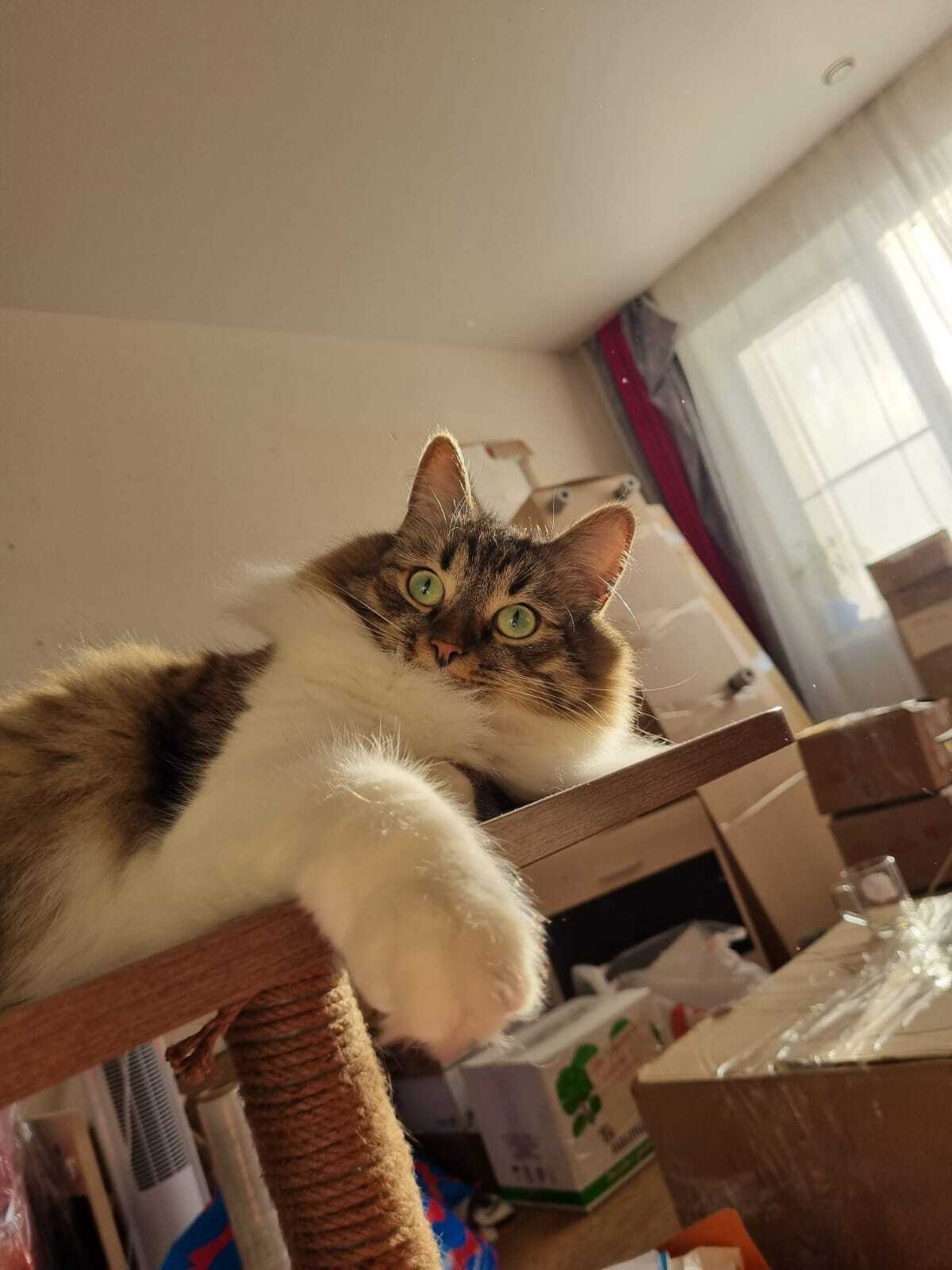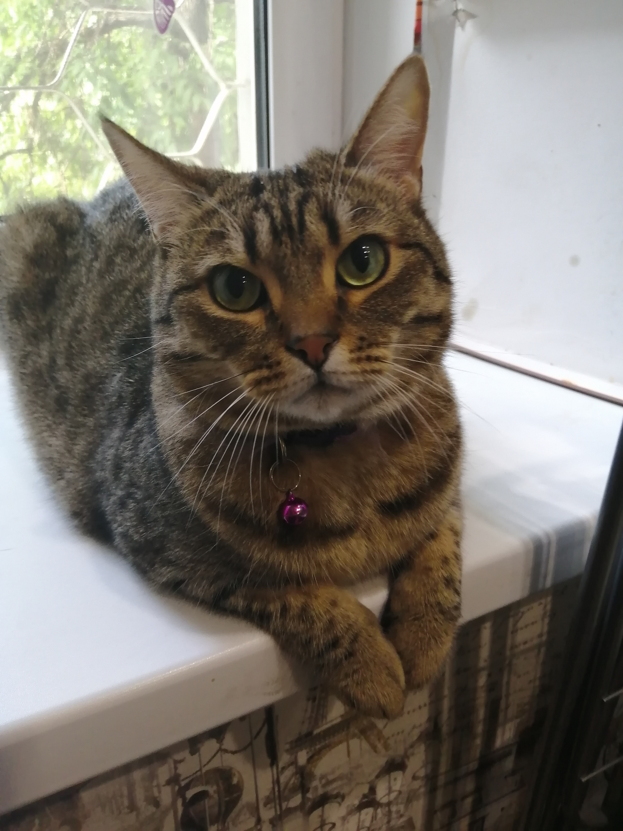 Умерла моя кошка. В грусти собрала все её причиндалы, понесла на помойку рядом поставить. Может, пригодится кому. И тут сидит существо. Мелкая, вся трясётся, пищит. Хвост подраный, на боку рана. Месяца два, не больше. Вороны над ней летают, прям, как чуют, что добыча лёгкая. Я постояла, посмотрела. Ну, штош, матери нет. Я надеялась, что появится, но не случилось. Очень злая я была. Вот оно мне надо??? Ну а куда деваться, такая мелкая и одна. Зарекалась больше котов не иметь!! В результате все кошкины игрушки и плюс мелкое помоечное котэ приехали ко мне. Зато, посмотрите, какие мы красивые сейчас! Глаза-вселенная!)