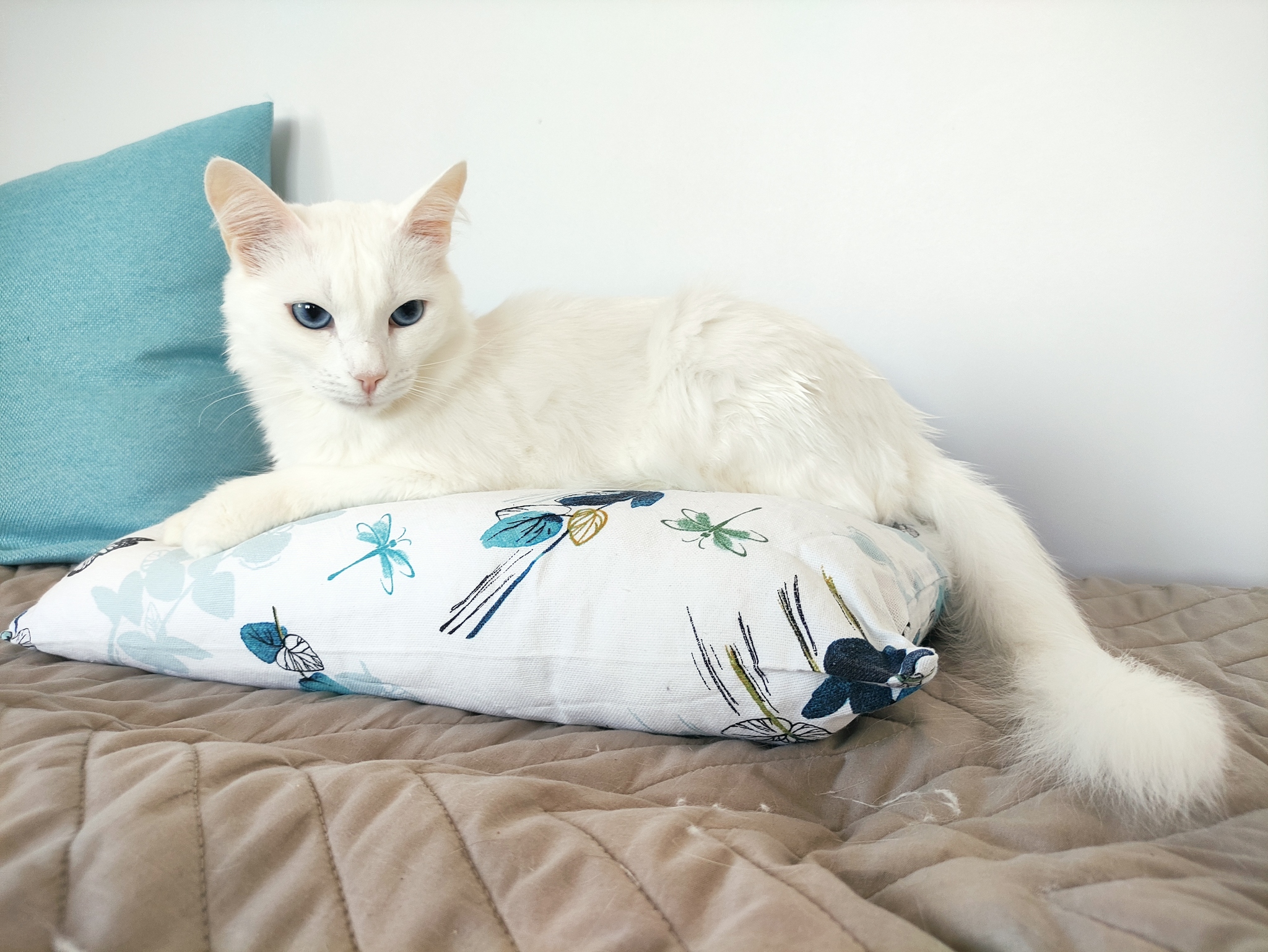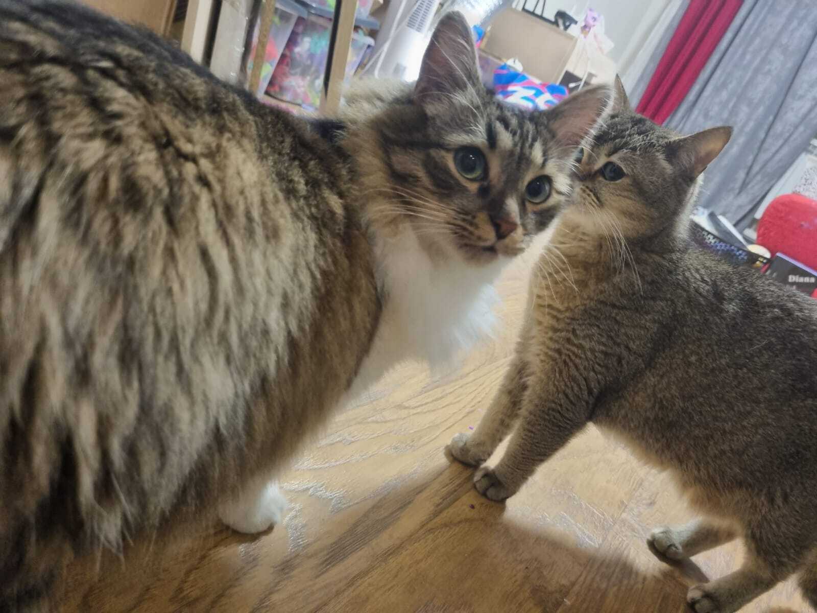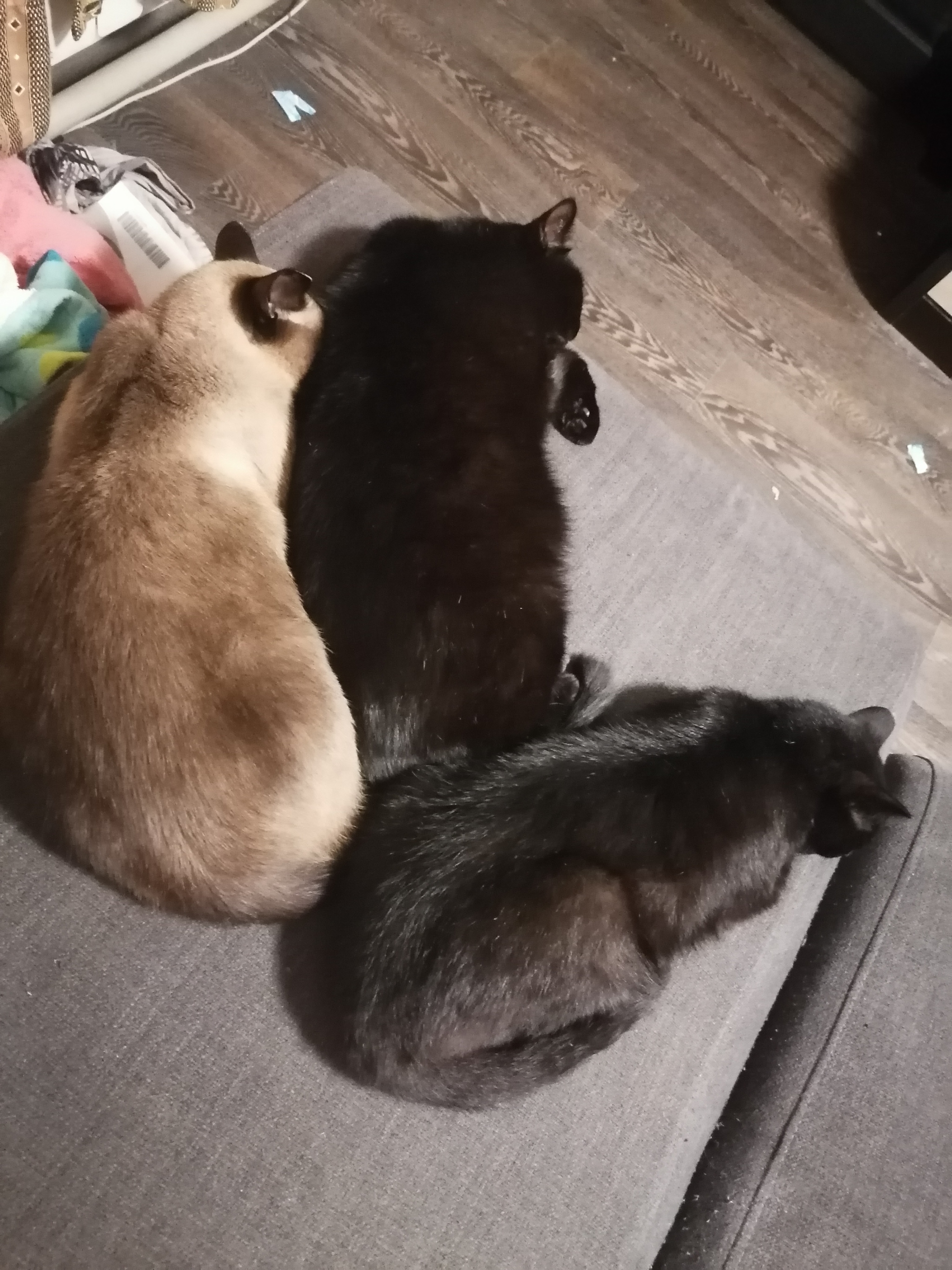 Умерла моя кошка. В грусти собрала все её причиндалы, понесла на помойку рядом поставить. Может, пригодится кому. И тут сидит существо. Мелкая, вся трясётся, пищит. Хвост подраный, на боку рана. Месяца два, не больше. Вороны над ней летают, прям, как чуют, что добыча лёгкая. Я постояла, посмотрела. Ну, штош, матери нет. Я надеялась, что появится, но не случилось. Очень злая я была. Вот оно мне надо??? Ну а куда деваться, такая мелкая и одна. Зарекалась больше котов не иметь!! В результате все кошкины игрушки и плюс мелкое помоечное котэ приехали ко мне. Зато, посмотрите, какие мы красивые сейчас! Глаза-вселенная!)