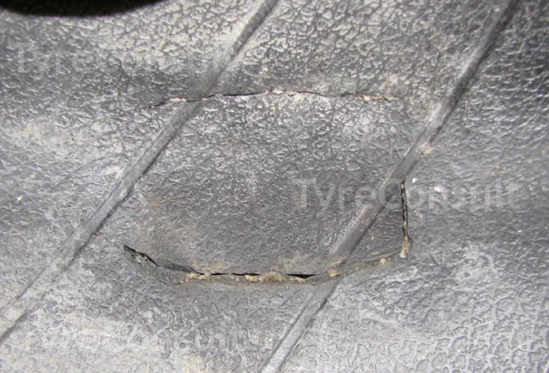 Менее очевидное повреждение, ощущается тактильно и при специальном свете. В этом случае нити каркаса так же перебиты, но покрывной слой резины не разрушен.