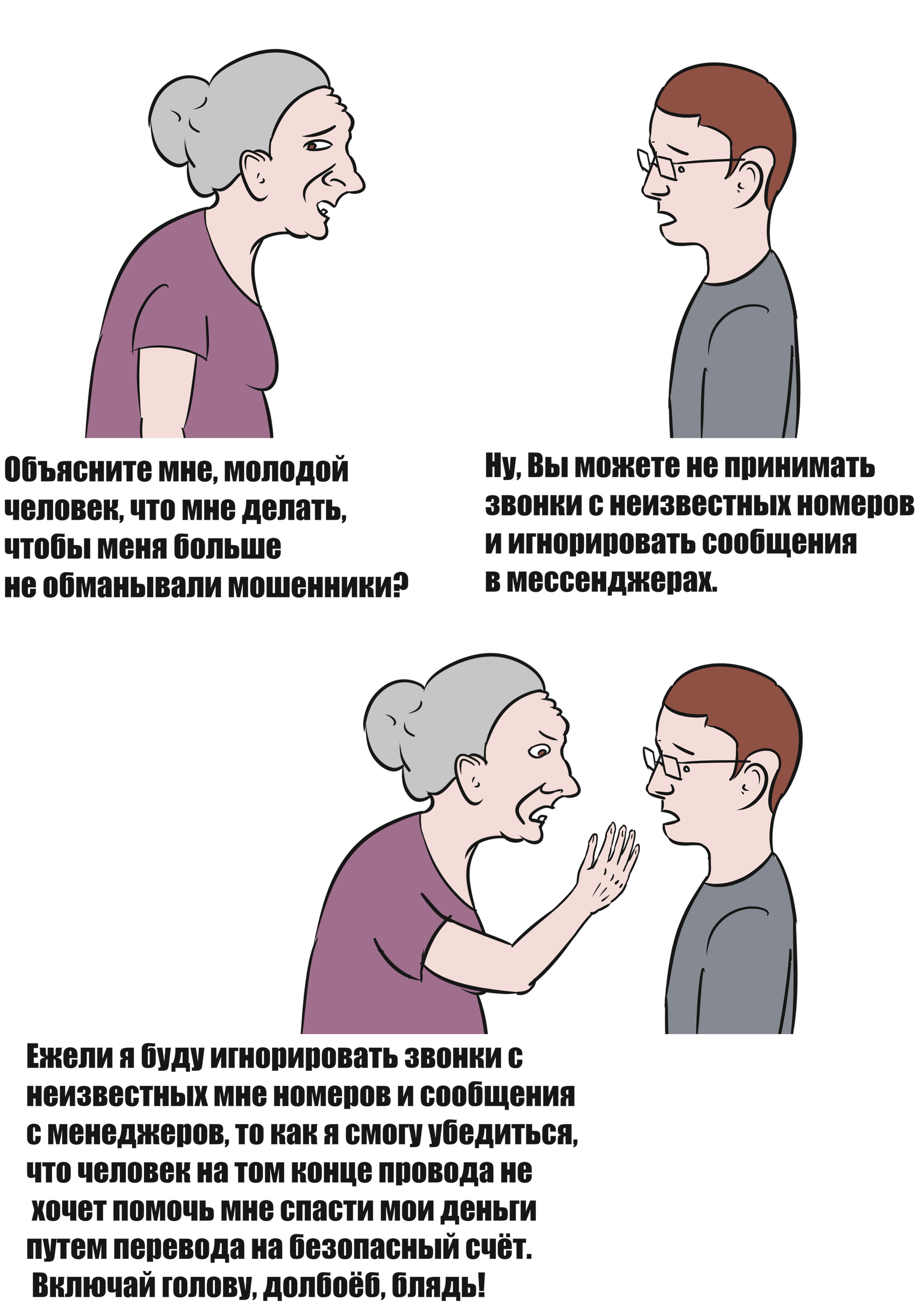 6 solenakrivetka Вот почему сложно защитить пенсионеров от мошенников: 7 часов назад [моё] Юмор Картинка с текстом Карикатура Мошенничество 1 1 1 Ещё 0