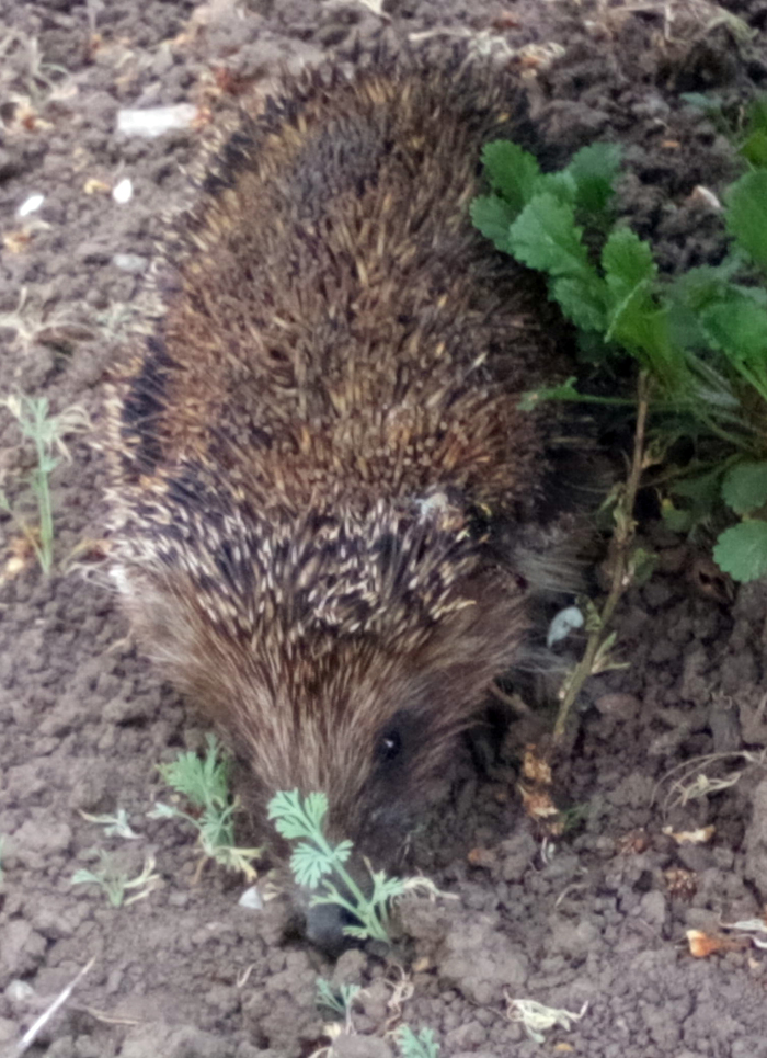 Вышел из ближайшего лесочка ёжик - прямо во двор, а потом в наш садик. Выглядел странно, рассмотрел - оказалось, что он обожжён и порядочно поранен. Простите за качество фото - ёжики не сильно расположены позировать - на верхней фотке он безуспешно попытался ощетиниться.