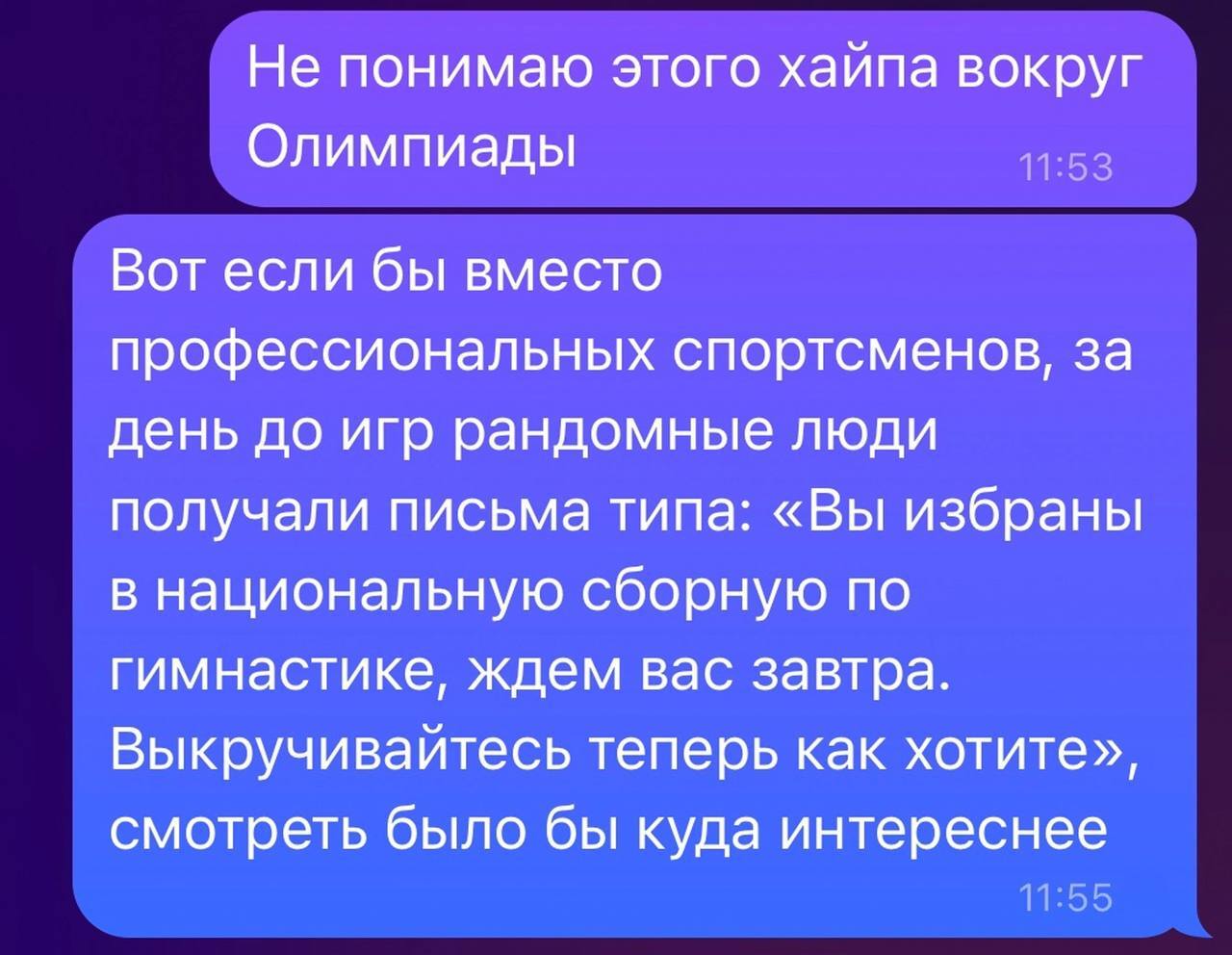 6 DaSeryozno Баяны Вот так было бы реально интересно 1 год назад Олимпийские Игры Переписка Юмор Скриншот Ещё 0
