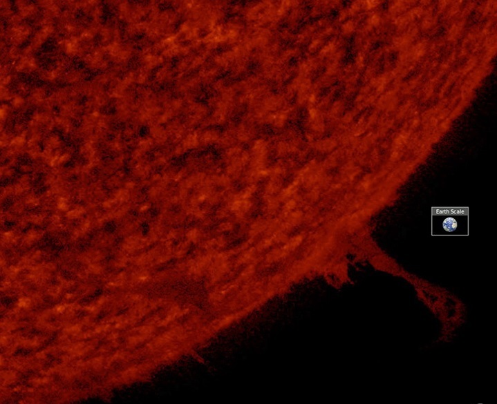 Если бы мы были на таком расстоянии от дневного светила (для плоскоземельщиков: черепаха и слоны зажарились бы). Эта фотография со сравнительными размерами Земли и протуберанца была на днях опубликована на сайте космической обсерватории SDO (Solar Dynamics Observatory).