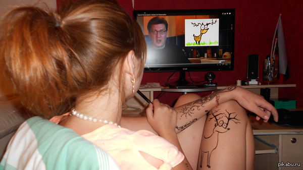 Оленя закончила. Кстати получился лучше оригинала. Теперь будет рисовать мужика справа?
