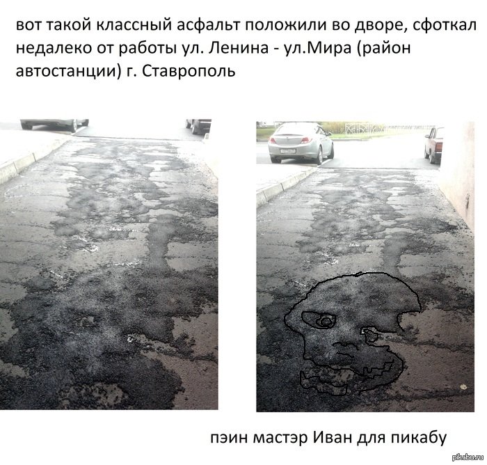 wolfvanya вот такая дорога в Ставрополе есть ))) 12 лет назад экономичный асфальт наверное ((( [моё] Ремонт дорог Асфальт