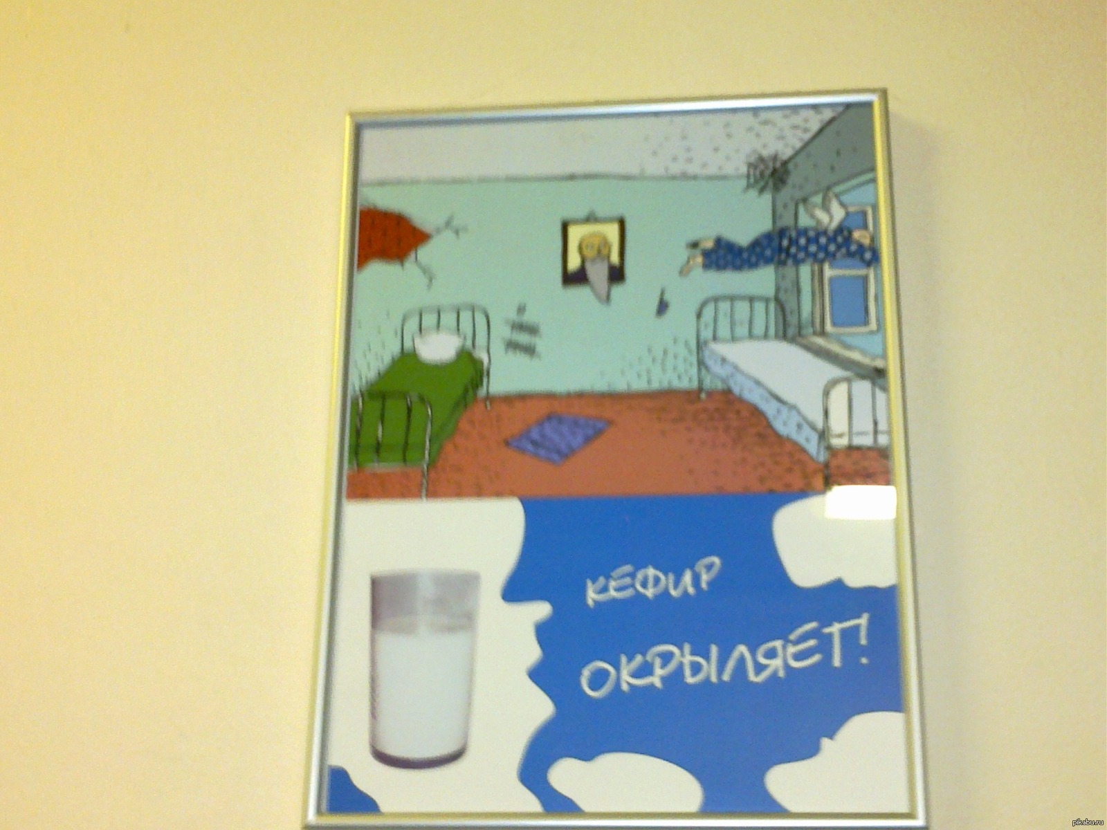 15 maxnya Вот такая картинка висит в психиатрической больнице в Минске 10 лет назад Кефир окрыляет. Фоткал пять лет назад уже и не помню на что Кефир Психиатрическая больница Минск Республика Беларусь