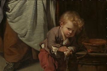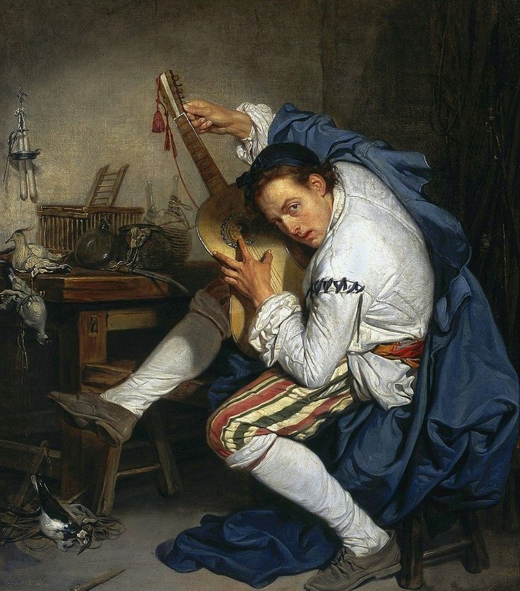Филипп Мерсье - отпрыск семьи французских гугенотов, родился и вырос в Германии, но жил и трудился в Англии, поэтому считается, скорее, английским художником. Писал он в основном портреты, но иногда и жанровые сценки. Например, "Беспечный муж". Эта картина 1738 года - иллюстрация к известной пьесе 18 века. Колли Сиббер, популярный актер и автор пьес, мечтал играть в трагедиях, но в итоге прославился как комик. Самая известная из его пьес - "Беспечный муж", написана в 1704 году. Ветренный сэр Чарльз Изи постоянно изменяет своей жене, в том числе со служанками, а жена закрывает на это глаза и терпит. Однажды она застает неверного мужа и любовницу спящими и видит, что с его лысой головы упал парик. Она беспокоится, что изменщик простудится, снимает с шеи стейнкерк (особый кружевной шарф) и повязывает ему на голову. Когда сэр Изи проснулся и обнаружил на голове сей предмет, то был так растроган, что раскаялся и встал на путь исправления. Данная сцена стала классикой и даже получила свое название - "сцена со стайнкерком". История неправдоподобная, но в духе морали того времени, "понять и простить". Пьеса с успехом шла до конца 18 века, вызывая скупую слезу английских обывателей.