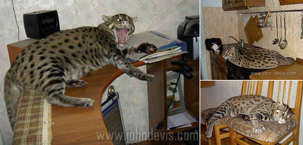 Да, в основном в сети можно найти фотографии Джона Дэвиса. Я очень много читала про него... И это грустная история. Как-то хозяева умалчивают, что случилось с ним потом...ничего хорошего, видимо((( Тогда эта история очень меня сильно расстроила. Очень жалко было животное, которое стало игрушкой, по факту. Кот-рыболов - редкий, вымирающий вид животных, находится в международной Красной книге. Их нельзя держать дома, нельзя продавать и покупать. Рассказы про Джона Дэвиса многих заинтересовали, и было много запросов - где такого купить, чтобы держать дома. И именно за это критиковали хозяев Джона Дэвиса. Что они и сами не справились с содержанием животного, и подняли такую нездоровую волну интереса к содержанию кота-рыболова в домашних условиях.