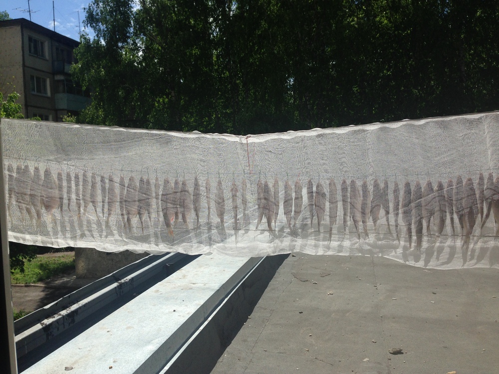А вот мои позапрошлые выходные. Чтобы мухи не лезли - слегка смазывал растительным маслом (правда оливковым - другого не было), после того как повесил (кондитерской кистью силиконовой). За сушку правда от жены чуть не отгреб :D