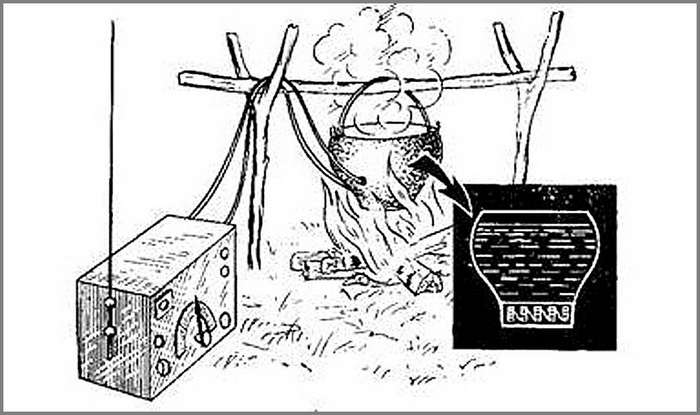 Когда началась Великая Отечественная война, физики Ленинградского физико-технического института разработали специально для партизан и диверсионных групп, забрасываемых в тыл противника, термоэлектрогенератор ТГ-1, известный под названием «партизанский котелок».