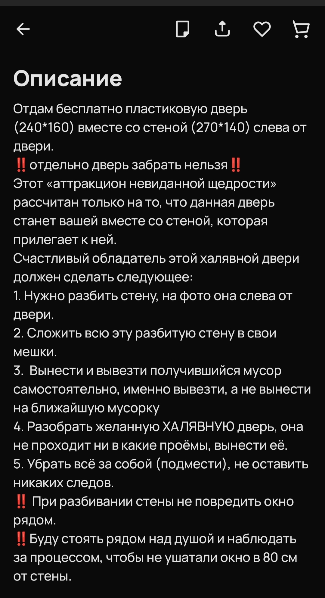 18 Есть официальный ответ Skittish Вот уж точно атракцион 4 месяца назад Авито Щедрость Длиннопост Дверь Стена Скриншот 4 Ещё 0