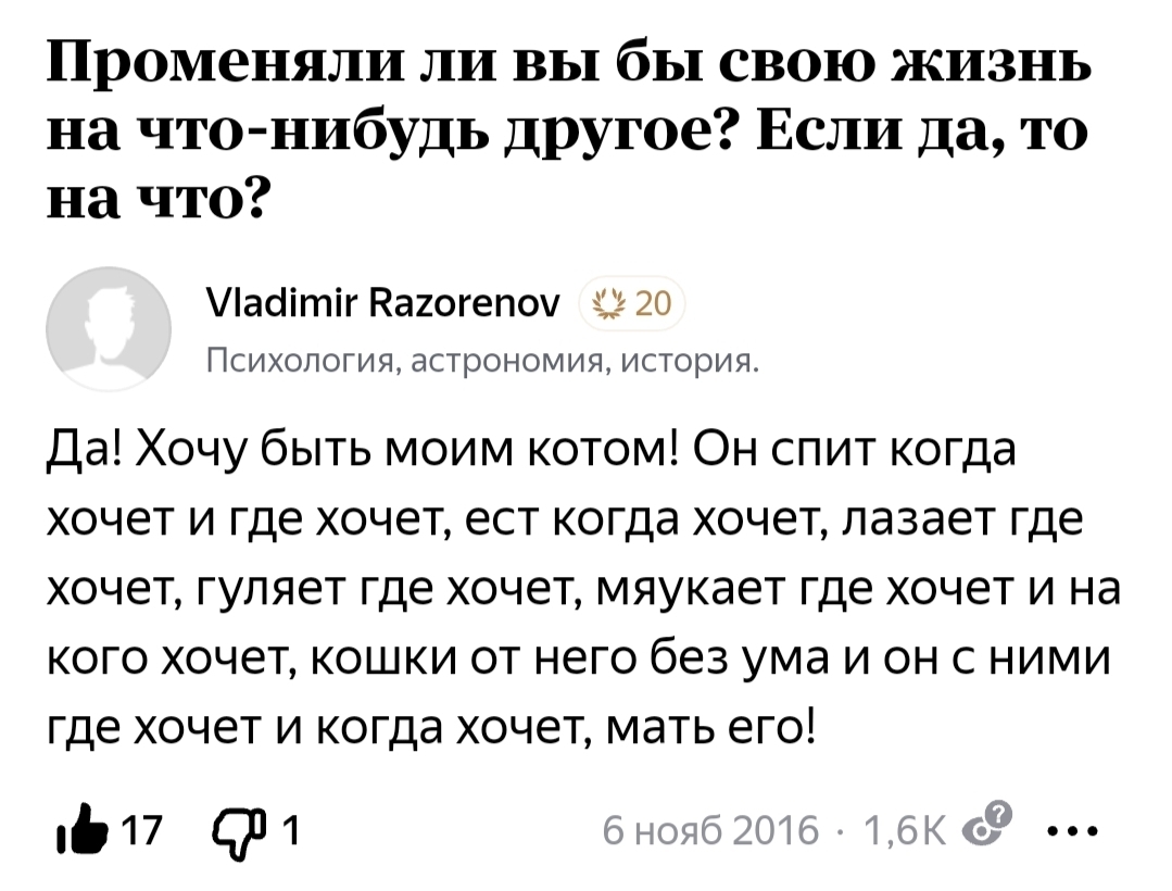 Вот я – кот, а чего добился ты?