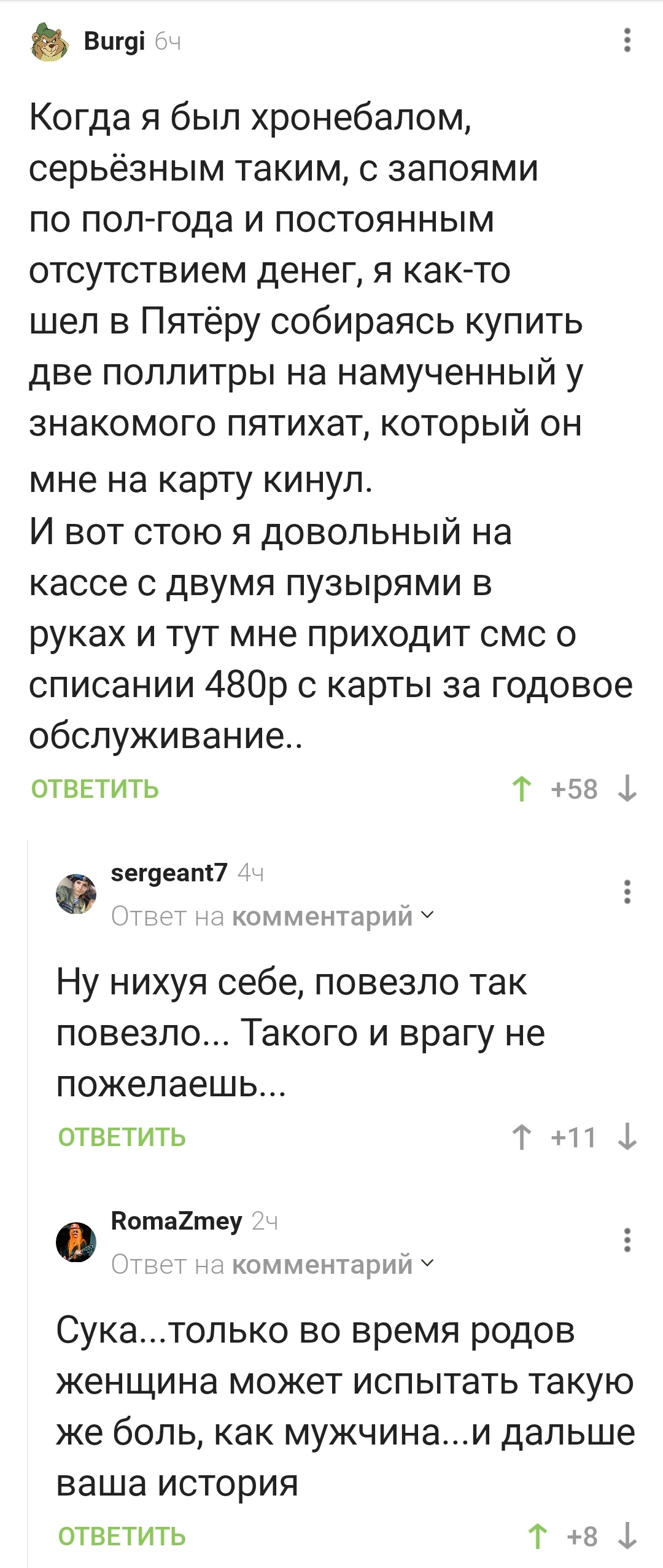 13 Wellikan Вот это боль! 1 год назад #comment_306761893 Бутылка Магазин Банковская карта Списание средств Комментарии на Пикабу Длиннопост Мат Скриншот 1 Ещё 0