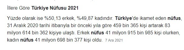 По поводу населения, как я уже говорил, это так, для инфы написал. Если вы заметили, я написал "почти 84 миллиона". Если уж точную информацию хотите, по последним подсчетам (декабрь 2020) в Турции было 83 миллиона 614 тысяч 362 человека :)