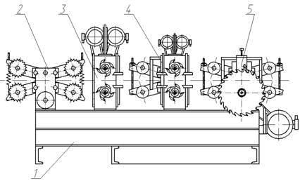 нету. в станках такого типа, для переработки тонкомера бревно подается с помощью цепи с толкателями