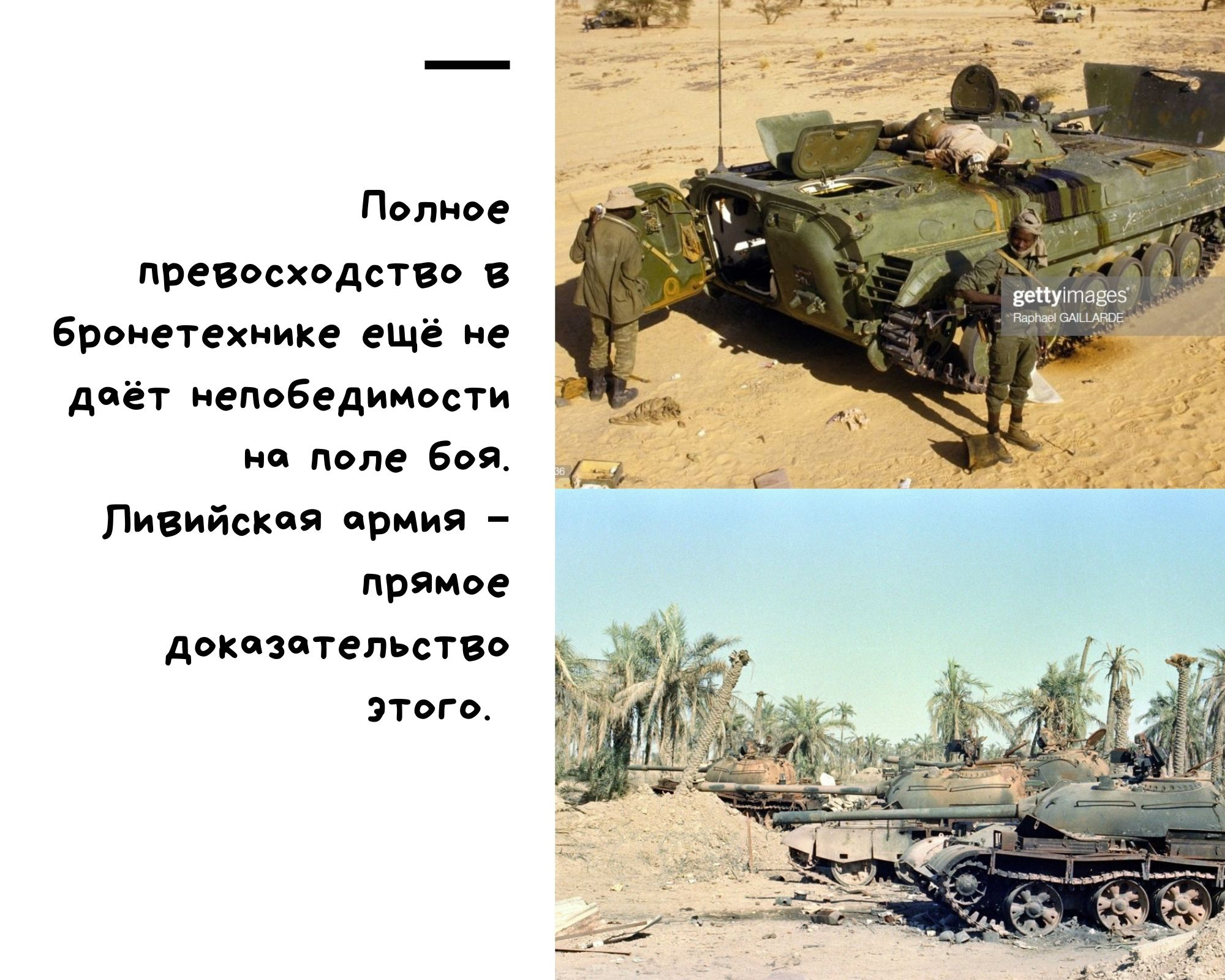 Чад мог противопоставить такой силе лишь раздробленные пехотные подразделения с устаревшим вооружением, несколько противотанковых и противовоздушных орудий на всю армию. Казалось бы, что могло пойти не так в делах по наведению народного порядка посредством ливийских войск в неспокойном Чаде? Осталось только ещё раз помочь ФРОЛИНА прийти к власти, и можно было аннексировать линию Азузу, а может даже и создать объединенное с Чадом государство на зло французским империалистами.
