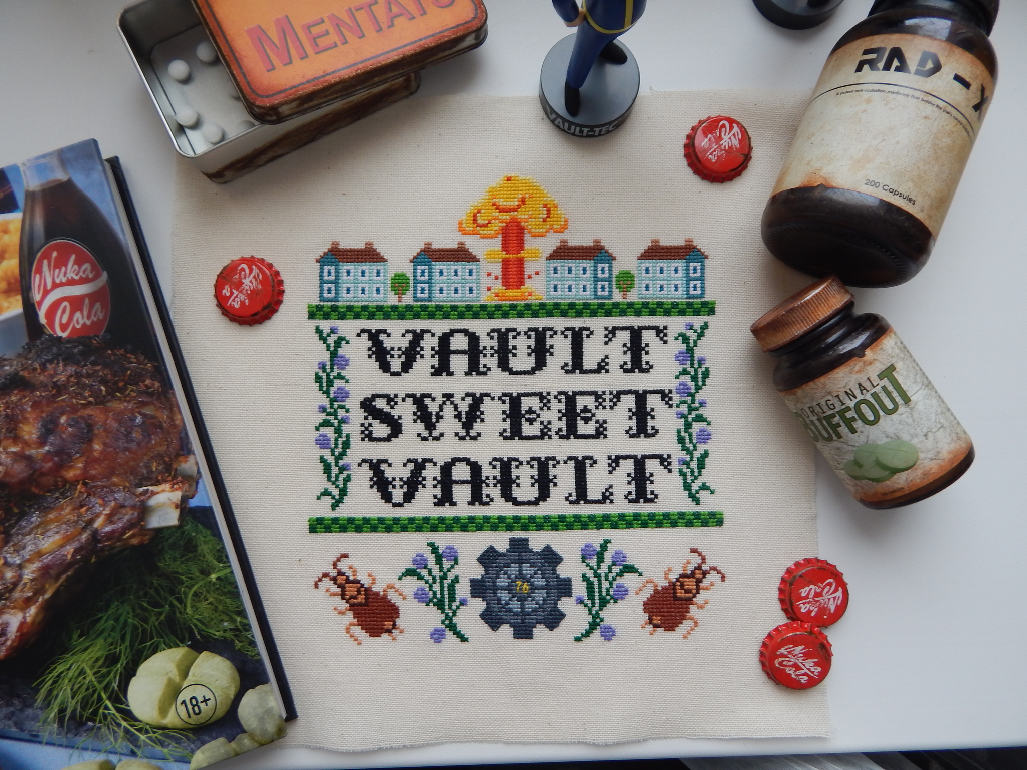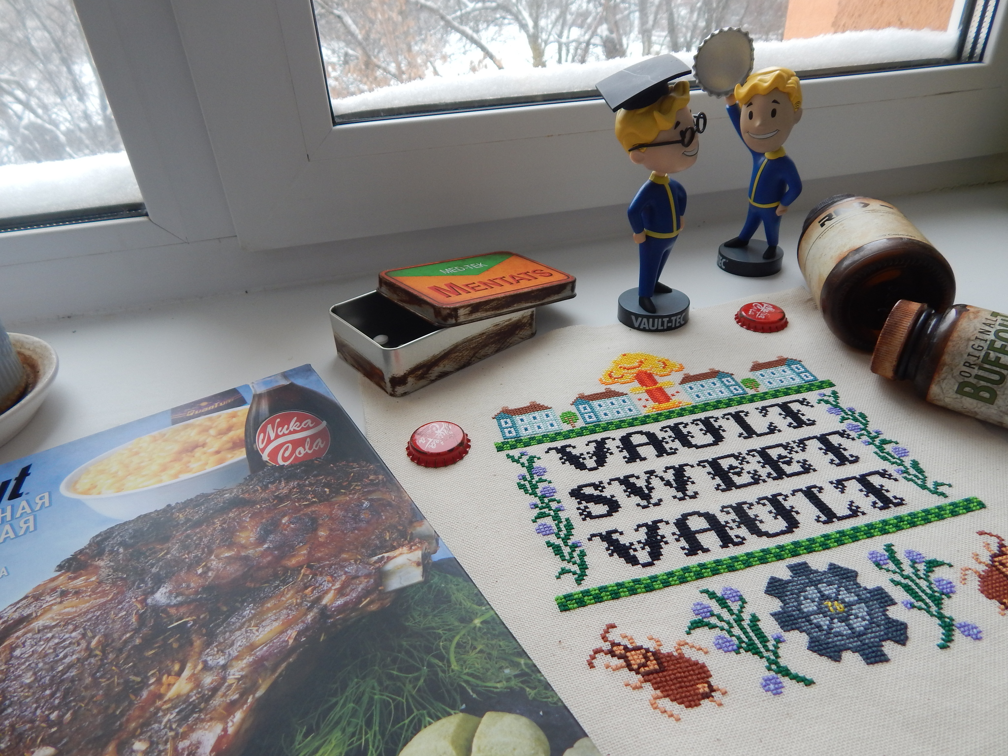 Похвалюсь своим первым полноценным январским вышивальным финишем. Начала я его 1 января под вышедшую тогда серию 2-го сезона Fallout.