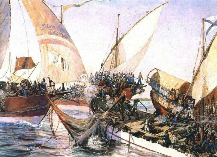Если османы стали бояться абордажа с непредсказуемыми гяурами севера, то те по отношению к противнику таких опасений не испытывали. И вскоре доказали это в ряде боёв с турецкой эскадрой неподалёку от Очакова — о них мы уже вкратце рассказывали. Напомним только, что совместные усилия солдат-артиллеристов, матросов, а также казаков-черноморцев (бывших запорожцев) под началом Суворова, Нассау-Зигена, Алексианоса, Джонса, Головатого и других выдающихся командиров обрекли мощную армаду отважного Хасана-паши на страшное поражение.