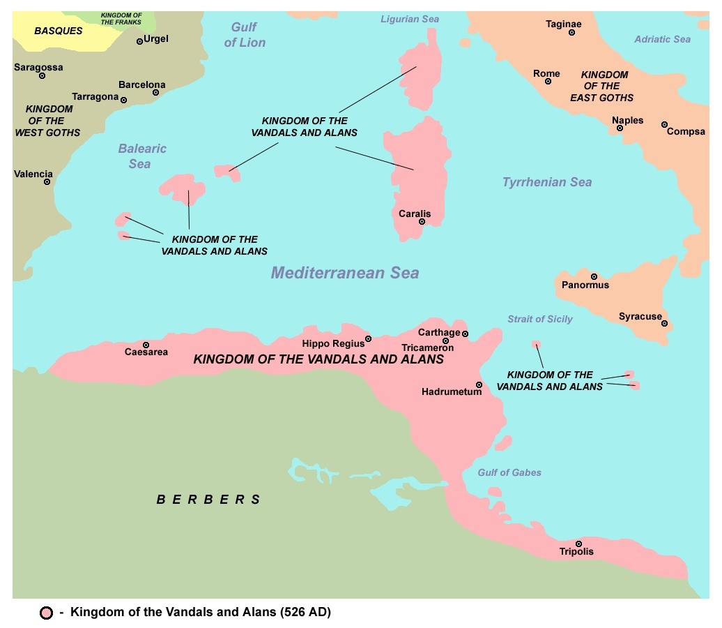 Так вот, о вандалах. Вандальское королевство в Африке появилось благодаря тому самому «попустительству римлян» вкупе с высокой мотивацией вандальских войск. Там буквально была ситуация «победа или смерть». И вандалы победили, после чего осели в Римской Африке – зажиточной области, своим положением спасённой от больших римских смут. Более того, при вандалах Африка не загнулась и вполне сносно себе жила дальше, но есть нюансы.