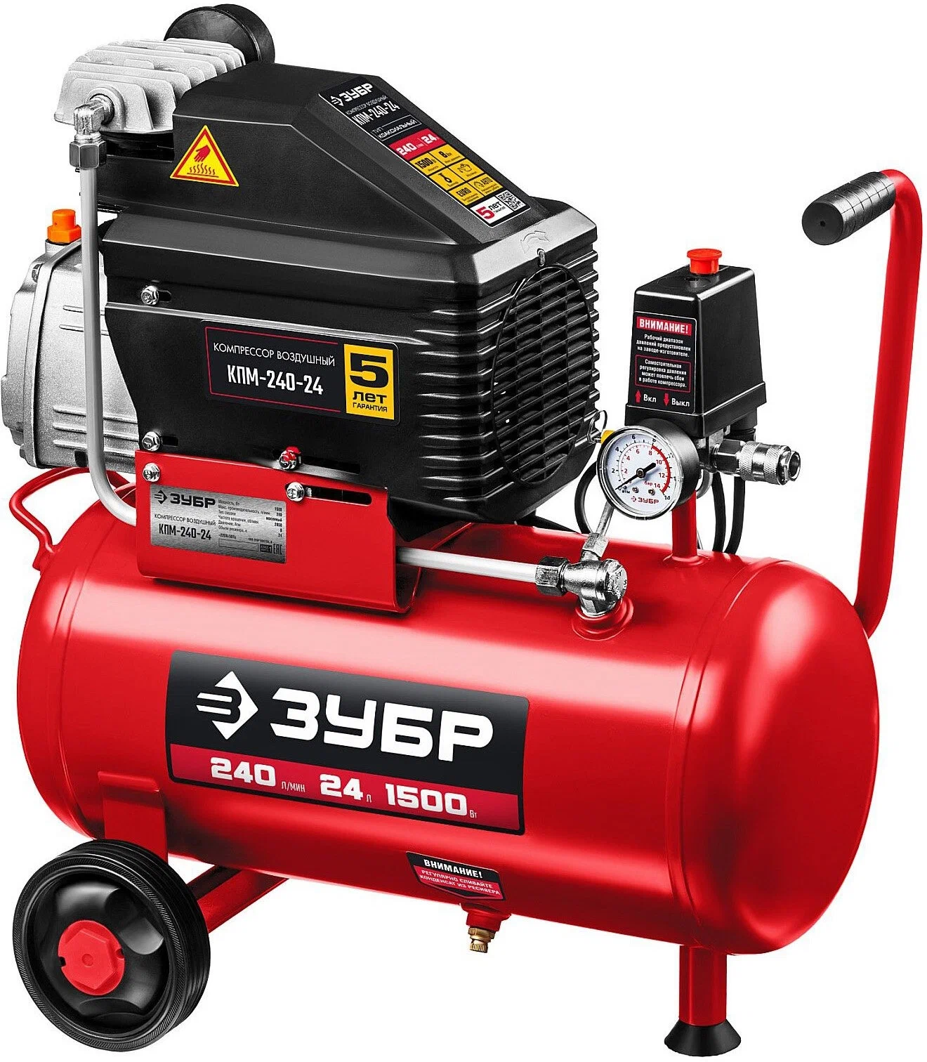 ЗУБР КПМ‑240‑24 Н6 – 24 л, 240 л/мин, масляный набор «6 в 1»