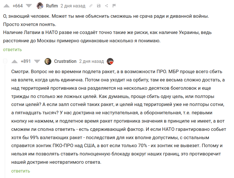 2016 Rediskos Возможная причина войны - это ядерная угроза для России? 3 года назад ссылка на комментарий: #comment_228012703 Политика Россия Украина Война Комментарии Скриншот Комментарии на Пикабу 36 12 8 6 3 Ещё 0