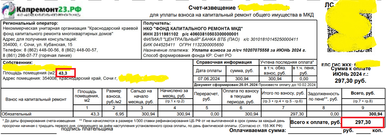 У меня взнос за кап ремонт 1358,30 это с девушки,а вы простите какую площадь занимаете? Откуда такие мизерные цифры?