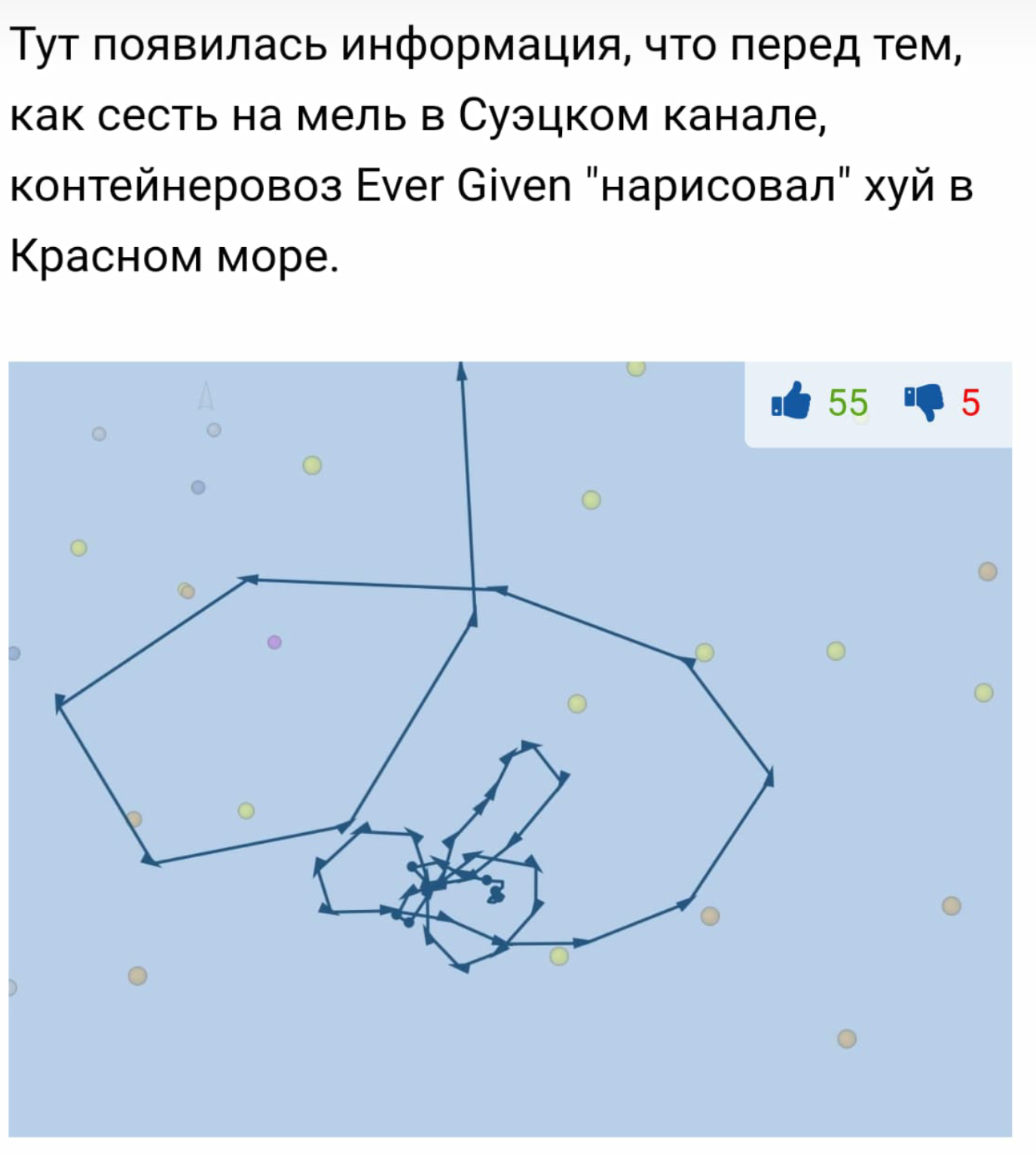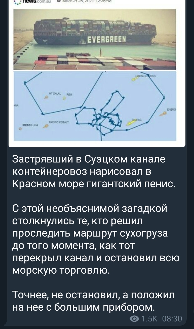 Вы не далеко от истины. Если учесть, что перед входом в канал он рисовал этим огромным контейнеровозом на карте хуй с яичками, то очевидно, что застрял он намеренно.