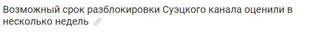 Мрак. У меня срочный груз идёт как раз, 2 контейнера. Скоро судно дойдёт до Суэца. Хотя может щас всех пошлют Африку снизу огибать вместо того чтобы ждать пока Суэц разблокируют.
