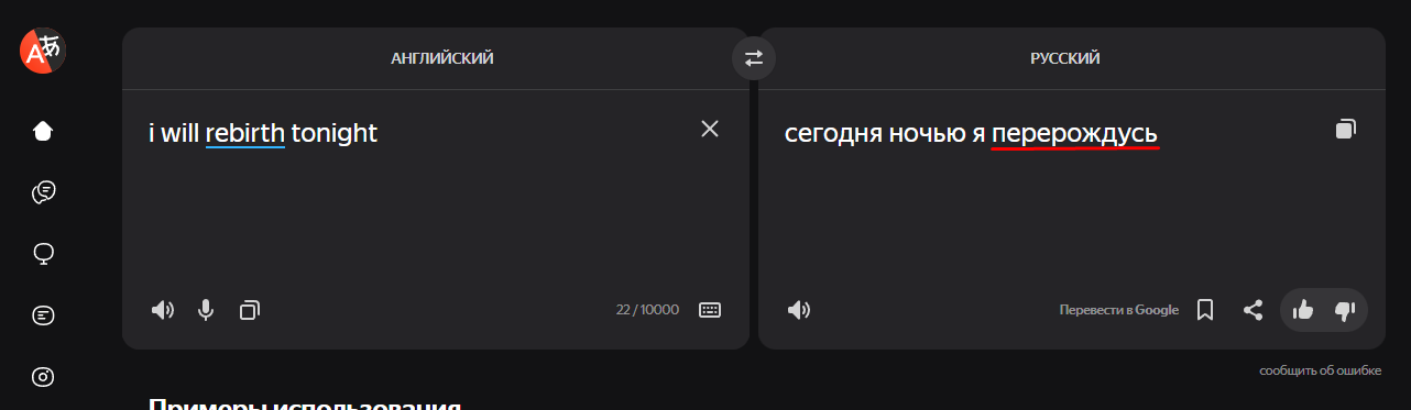 10 I.VANmusic Юмор и мемы Юмор Возродлюсь? Это точно русский язык??? Серия Юмор 11 месяцев назад захотел сделать перевод и с удивлением обнаружил новое слово. Фиг с ним наверное так надо... оба переводчика приятно поразили) [моё] Юмор Яндекс Переводчик Google 1 Ещё 0