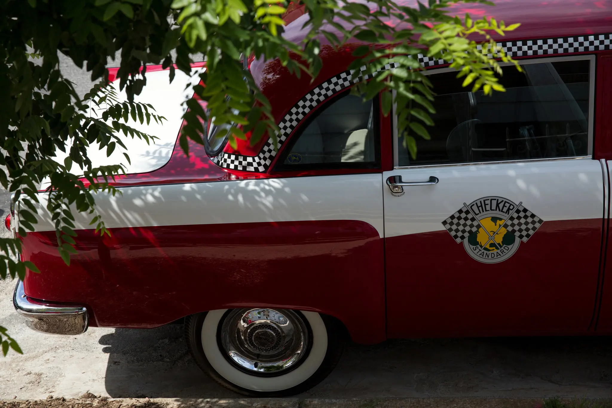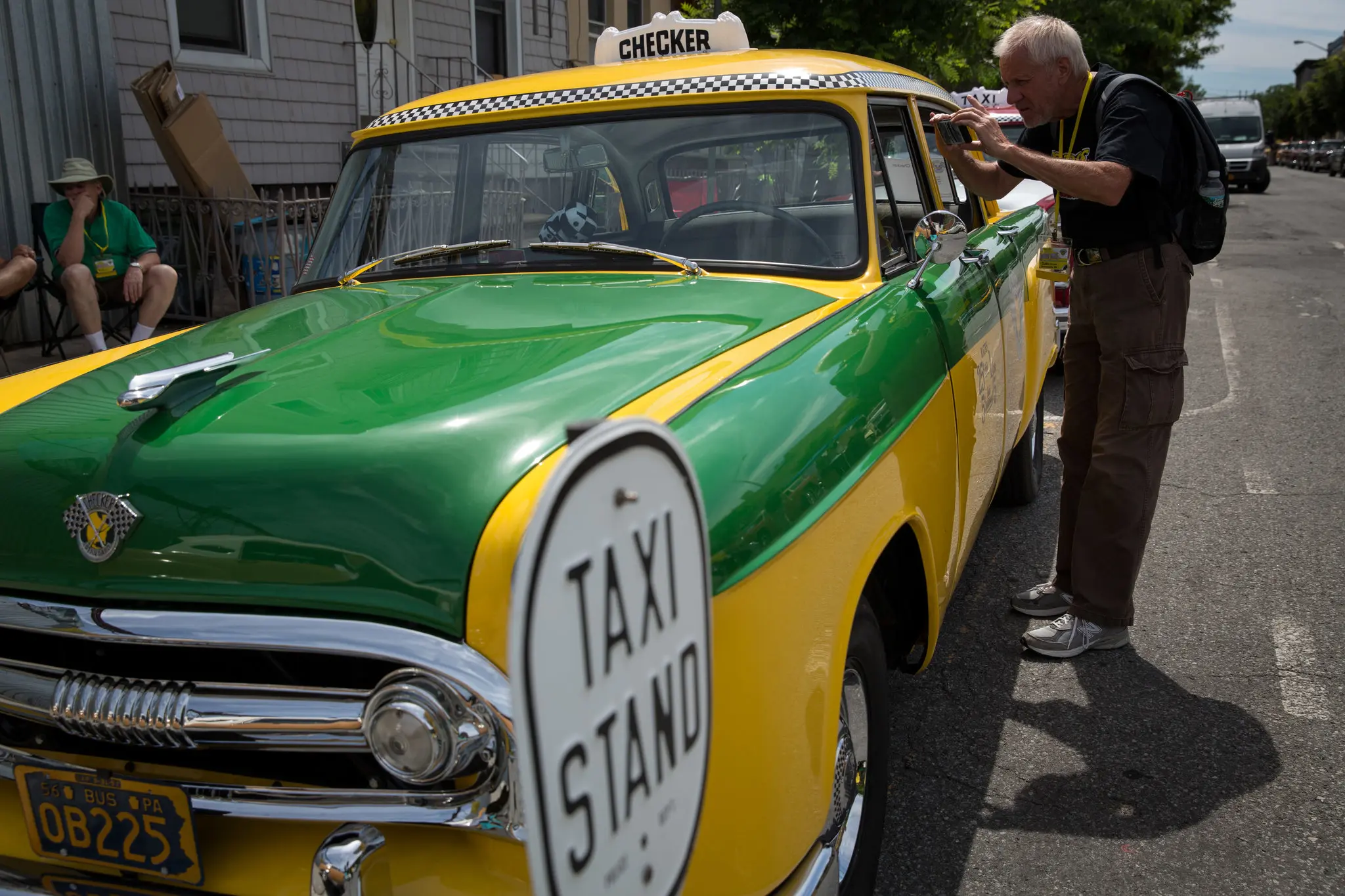 Посетитель фотографирует Checker A8 Брюса Урича 1956 года.