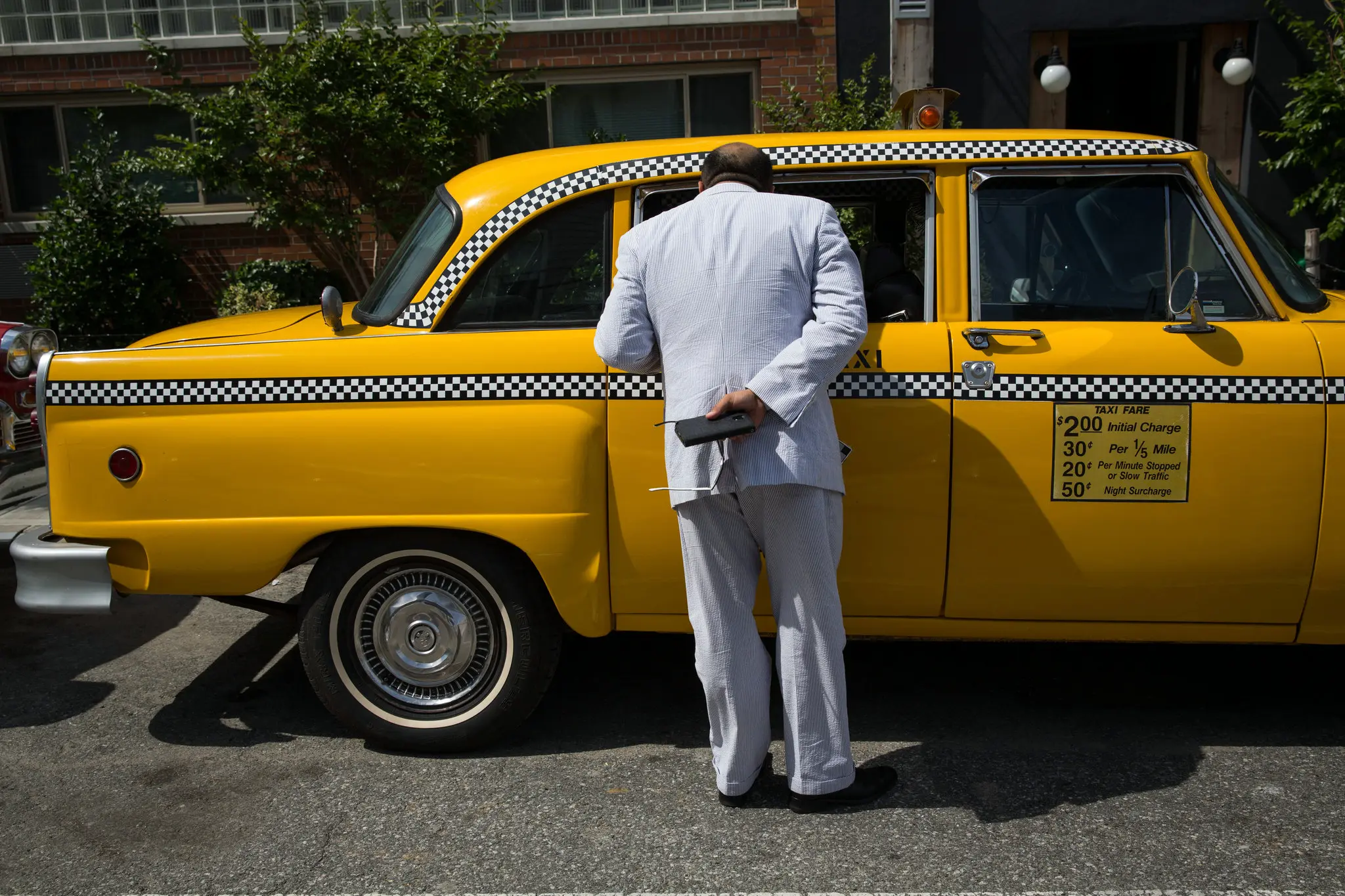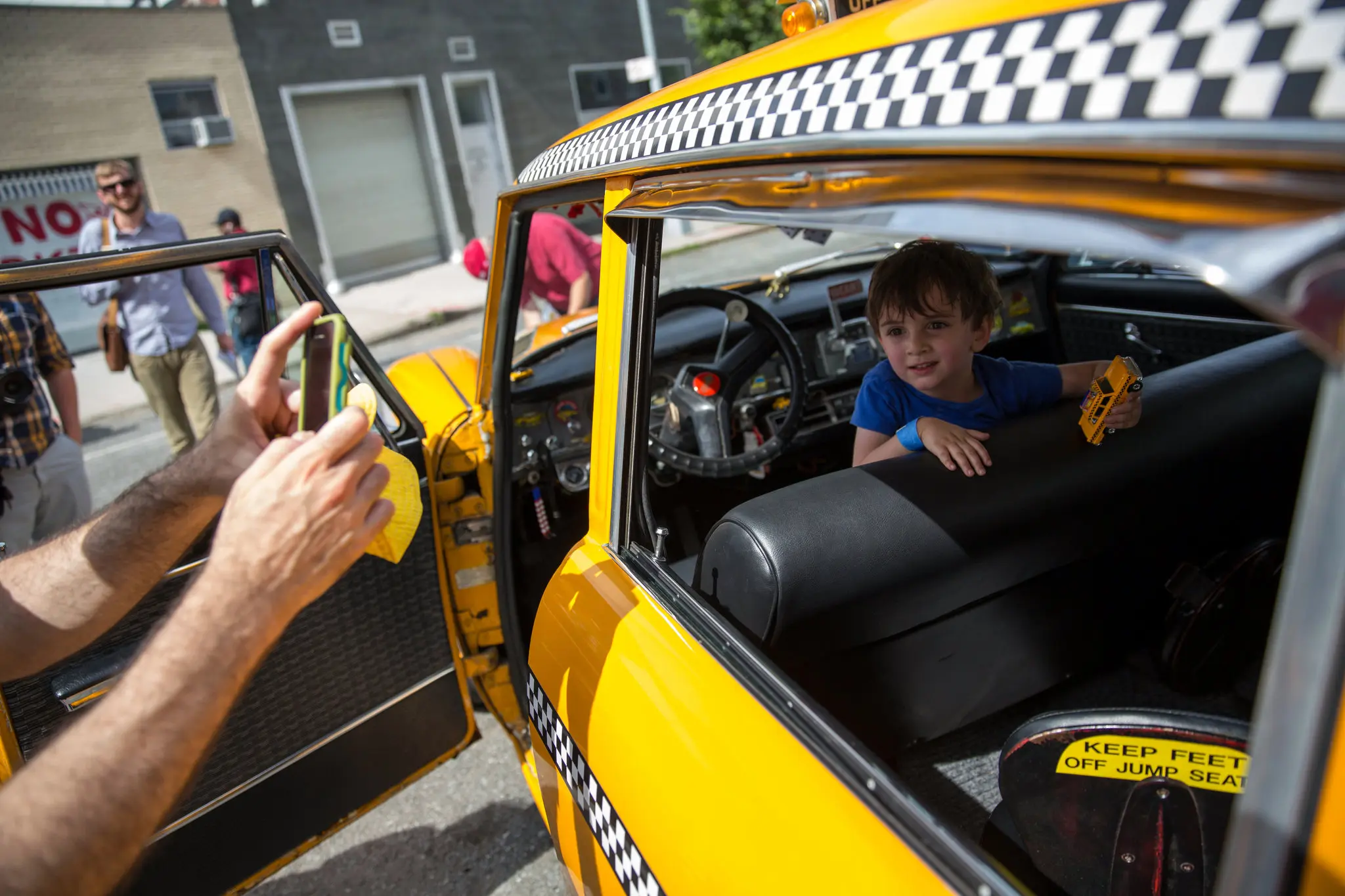 Бенджамин Хабер, 3 года, проводит инспекцию интерьера кабины Checker A11, принадлежащего Виктору Койро.