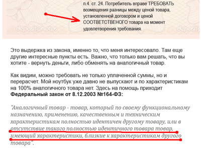 Допустим для меня аналогичный товар моему ноутбуку 2 летней давности, это Apple MacBook, размером одинаковые, железо полностью одинаковое, характеристики дисплея одинаковые, тоесть мне должны вылпатить до 150 000р разницы?
