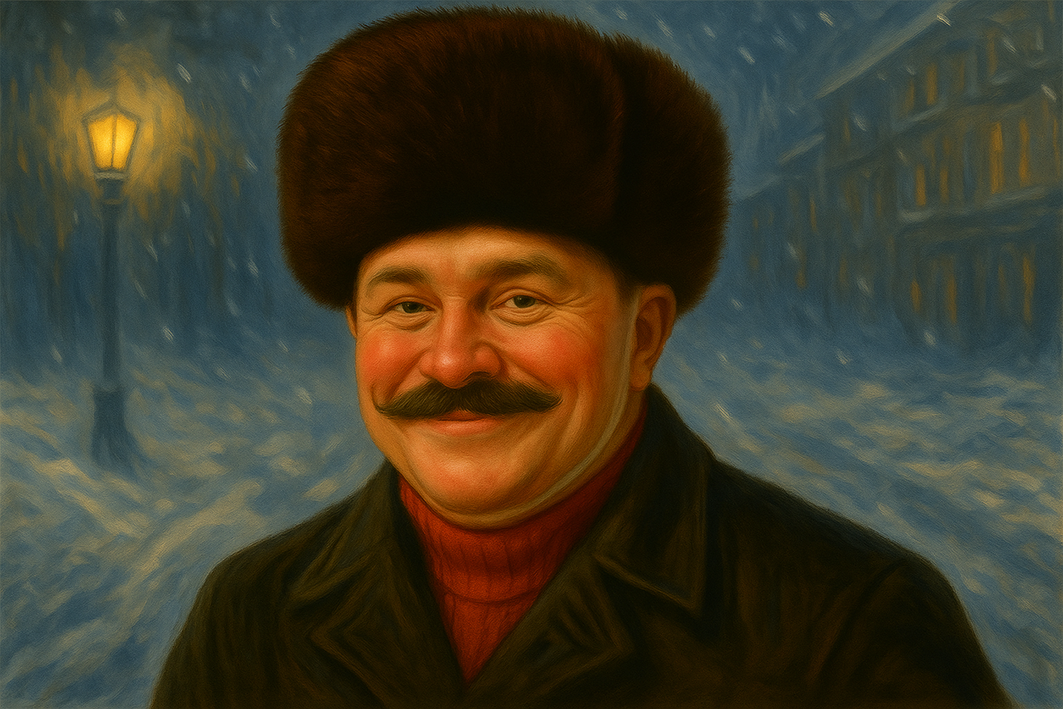 И вот, зимний вечер. Аркадий Ефимович идёт по улице гордый, мех в свете фонарей блестит, внутри голова греется, снаружи душа радуется.