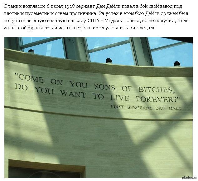 2011 Imverecundus "Вперёд, сукины дети! Вы что, хотите жить вечно?" 10 лет назад Война Сержант Ден Дейли США ВКонтакте Картинка с текстом