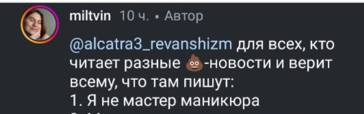 Во-первых, где доказательство, что человек делает маникюр? Нигде об этом не написано. У нее весь инстаграм про то, что она зарабатывает онлайн на рилсах и тд. Про маникюр было, да. Только то, что она не сообщает мастеру, что больна вич (на что имеет полное право, согласно законодательству РФ). Уважаемыq @moderator, давайте запросим у ТС пруфы на то, что человек работает на маникюре?
