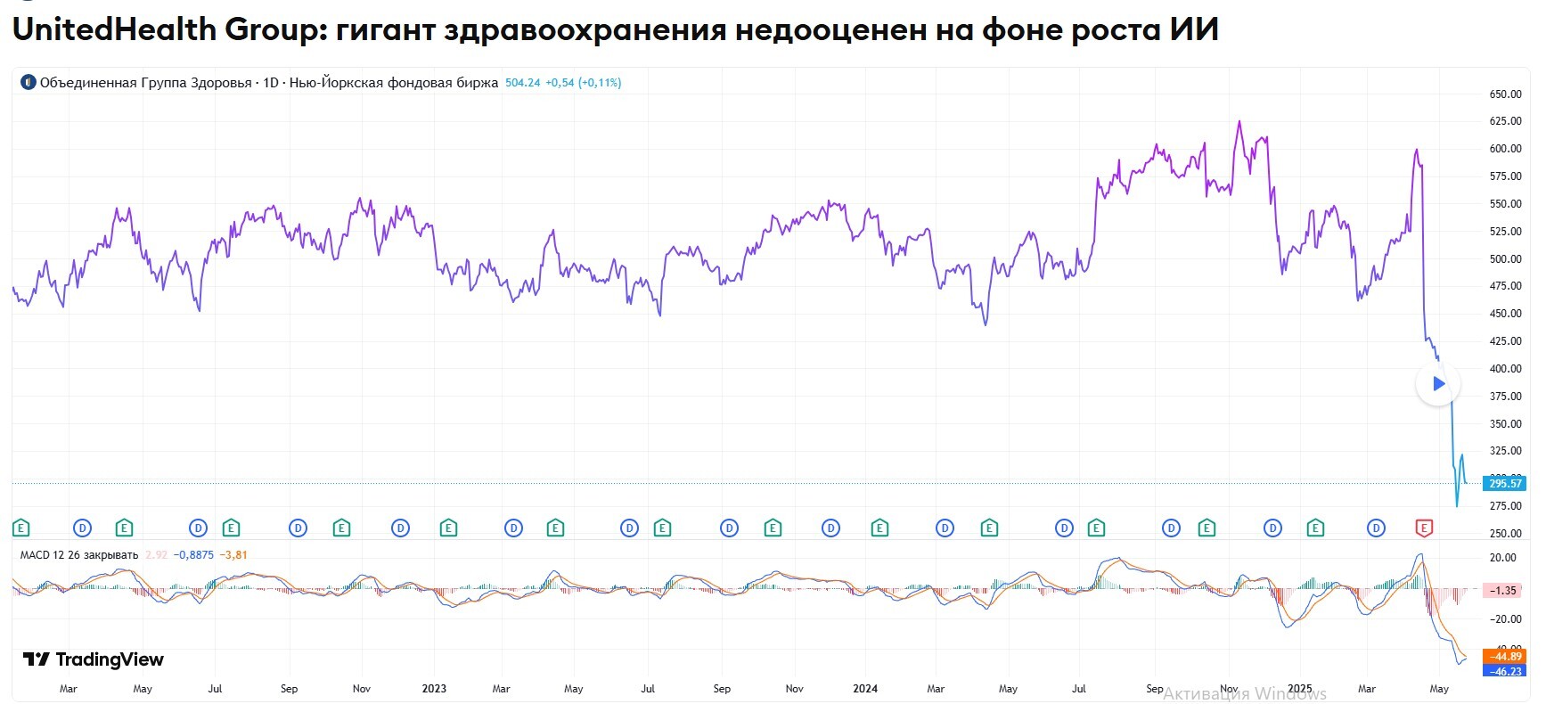 Группа UnitedHealth (UNH) - крупнейшая медицинская страховая компания в США, столкнулась с потрясениями: ее акции упали с 14 апреля с $600 до $295,57. Но, несмотря на трудности, UNH представляет собой привлекательный ресурс, благо, одним из пионеров использующий возможности ИИ по максимуму. Инвесторам не будет лишним рассмотреть этого титана здравоохранения по его текущей цене, рассуждает в своей колонке на Trading View генеральный директор Mind Money Юлия Хандошко.