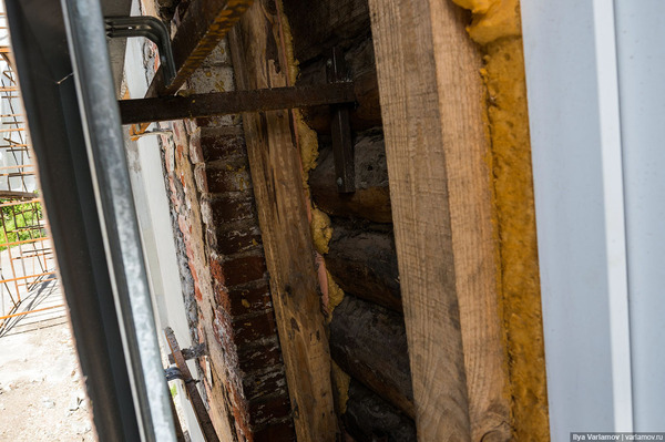 Под металлическими профилями с новенькой плиткой остались старые кирпичи и бревна. Сегодня красота России не нужна.