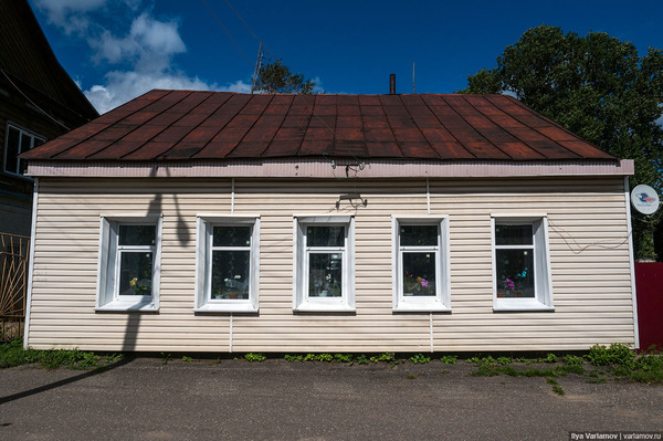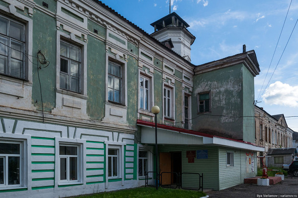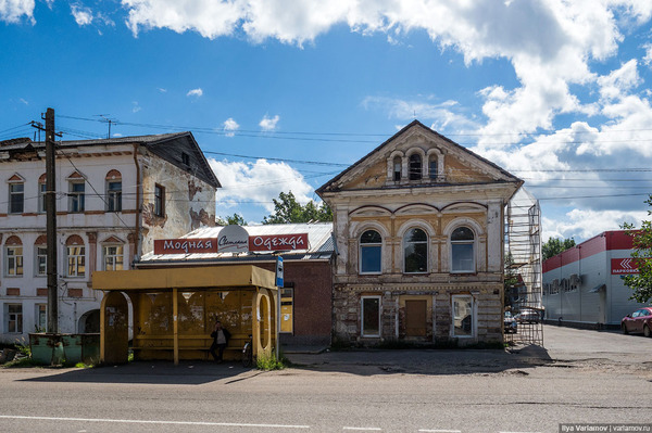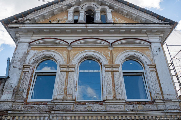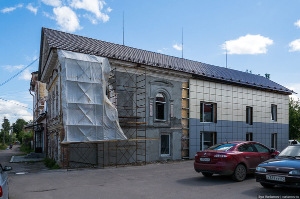 Вот так здание выглядит с другой стороны. Эта часть раньше была деревянной, с резными наличниками, но её просто уничтожили.