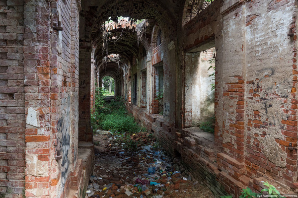 Крыша одного из корпусов недавно обрушилась. В принципе, тут всё давно стоит в руинах.