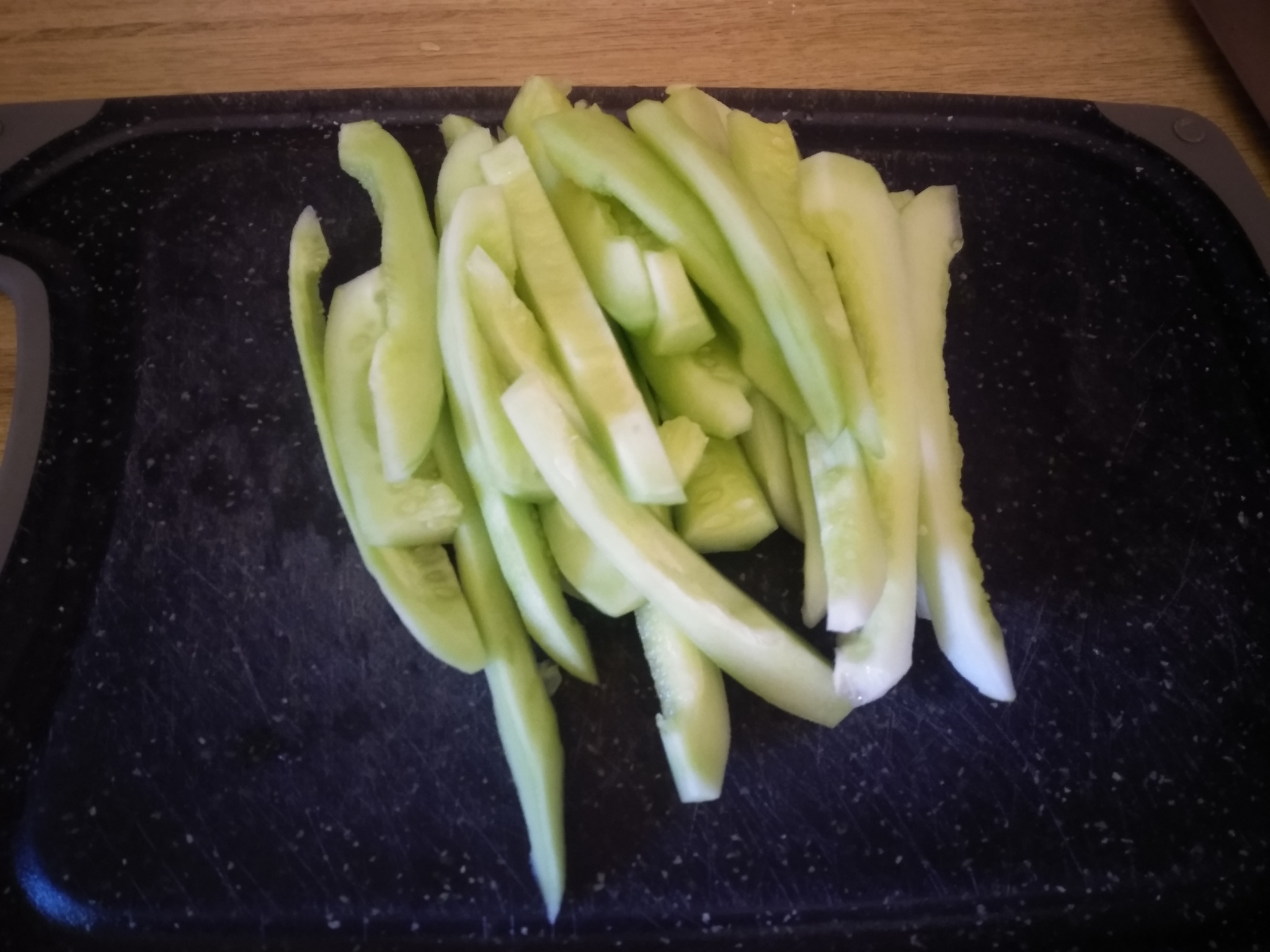 Огурцы нарежьте ломтиками. Яблоки нарежьте тонкими ломтиками.