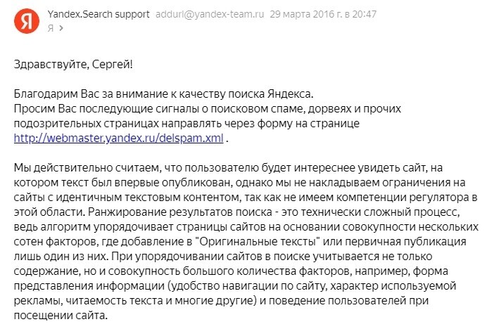 Вот, кстати, ответ еще в далеком 2016 году на мой запрос в поддержку Яндекса по похожему вопросу. Почитайте и вникните во всю глубину: