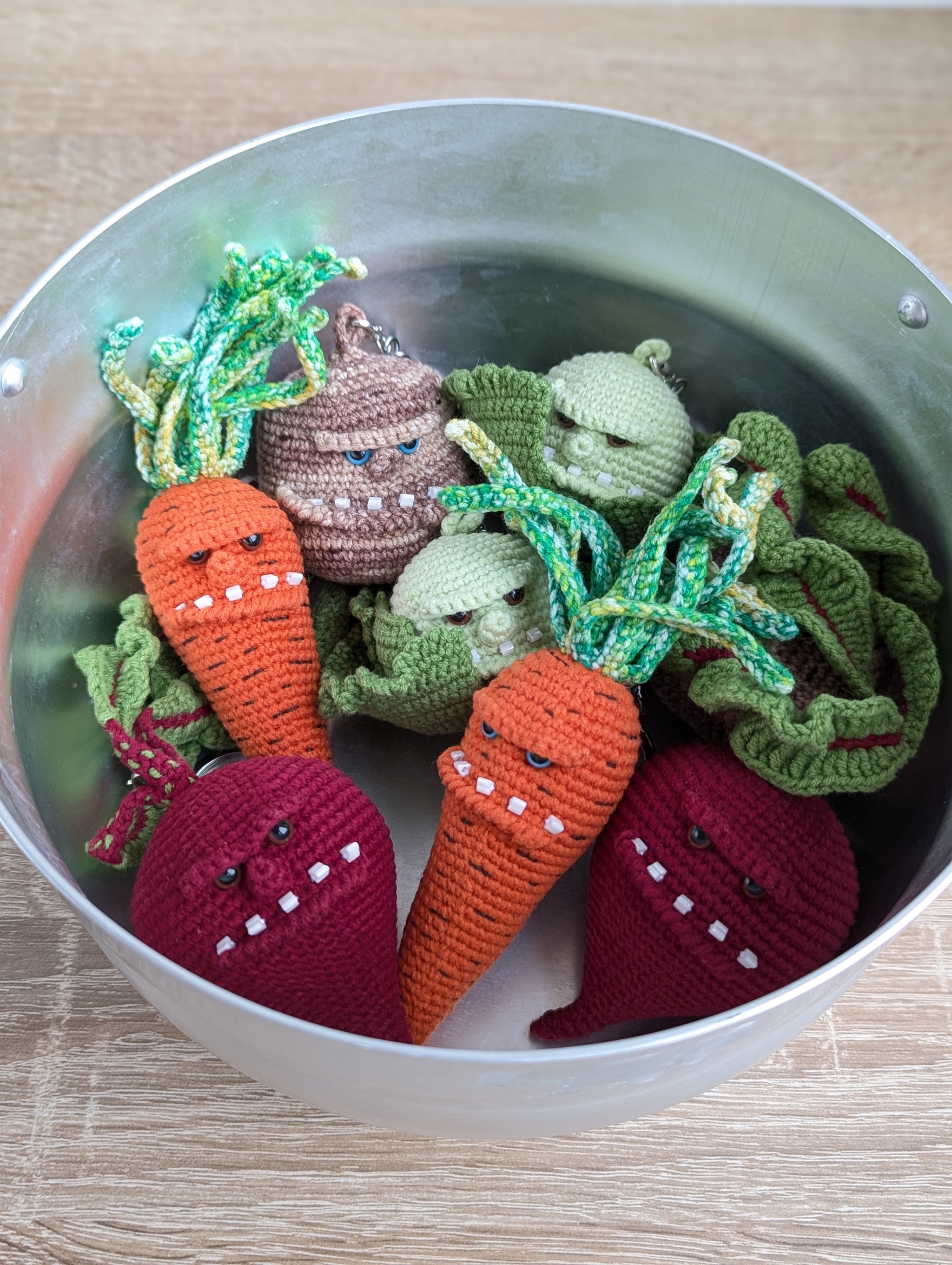 Брелоки связаны крючком из хлопка с добавлением акрила, внутри холлофайбер, глаза пластиковые, зубы - бисер.