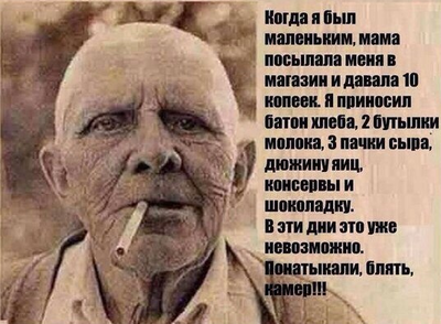 Как это можно, вы только вдумайтесь! Так издеваться над людьми? Годами ездить на трамвае за три копейки, а на метро — зя пятак! Годами платить за квартиру 5 рублей в месяц! Десятилетиями знать, что если закончишь ВУЗ — наверняка попадёшь на работу по специальности! Ни тебе безработицы, ни тебе взяток! Ни тебе папы — банкира! Ну что это за жизнь? Кто такое выдержит?