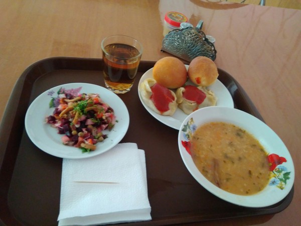 14 limpopoEmil Время обеда 8 лет назад Время обед Пикабушники всем приятного аппетита. Вот у меня вопрос такой сколько вам обходится ваш обед?Снизу приложу мой обед.Суп Харчо, салат овощной с грибами, манты 2 штуки, две булочки, сок яблочный. Все пошло на 137 рублей. [моё] Обед Еда Цены