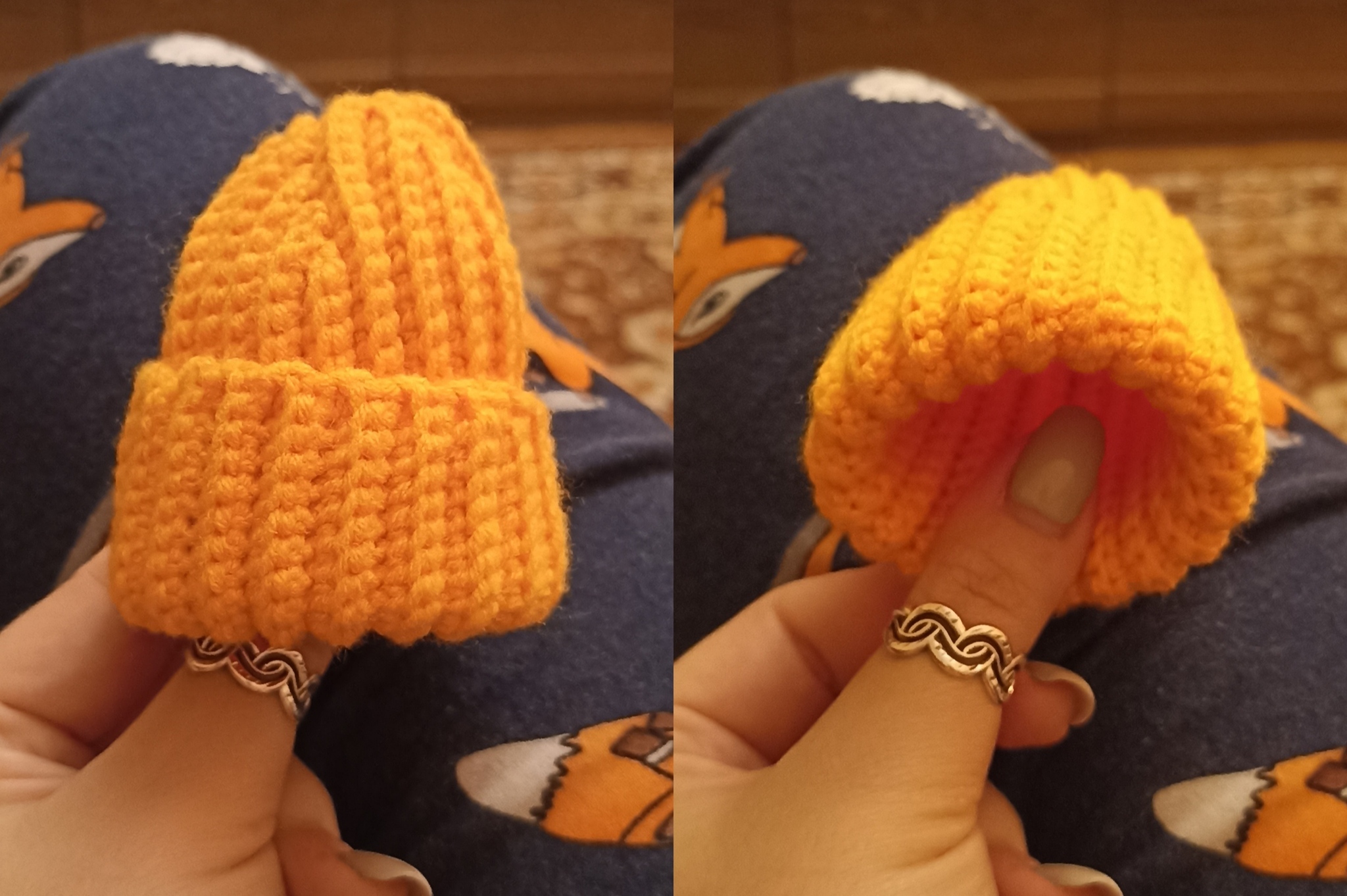 Очнулась, когда уже довязала изделие. Теперь у меня дома есть микро-шапочка цвета морковки. 😄