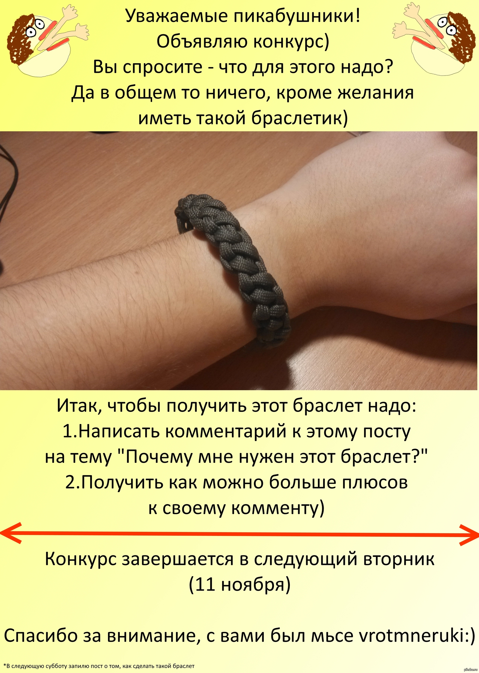 vrotmneruki Вротмнеруки, это ж конкурс! 11 лет назад Ставьте плюсыминусы, комментируйте, выигрывайте браслет:) [моё] Конкурс Плетение Браслет Халява
