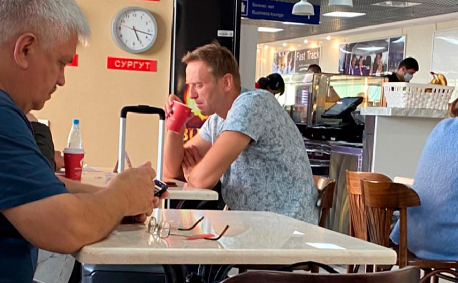 Во время полета Алексею стало плохо, он ушел в туалет и там потерял сознание. Самолет достаточно быстро совершил экстренную посадку в Омске (Что и спасло жизнь политика, как утверждают в клинике «Шарите») Навальный был доставлен в больницу №1 города Омска, где его ввели в искусственную кому и подключили к аппарату искусственной вентиляции лёгких.