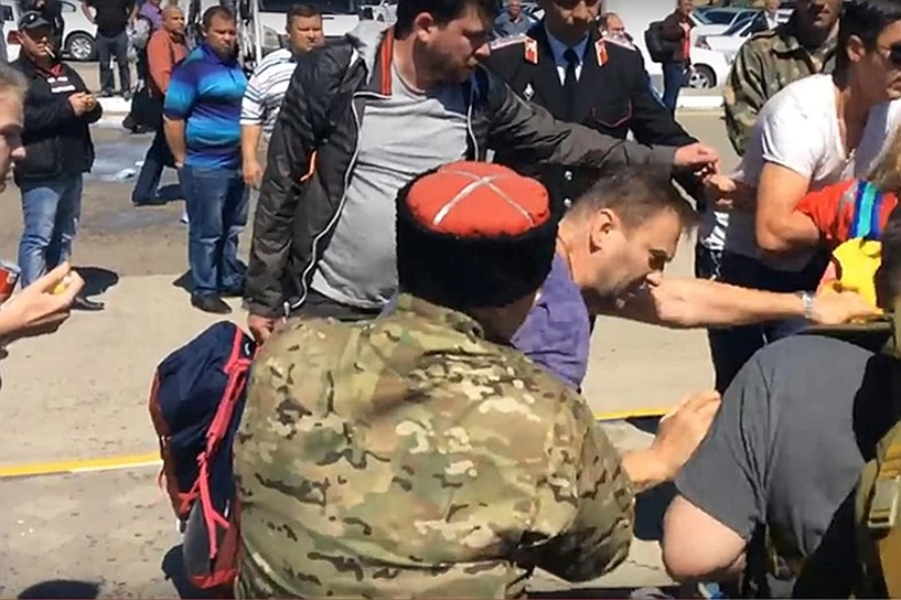В аэропорту Анапы на группу оппозиционно настроенных активистов (в их числе был Алексей Навальный), напали несколько десятков человек, переодетые в форму казаков. Оппозиционеров облили молоком, а также избили.