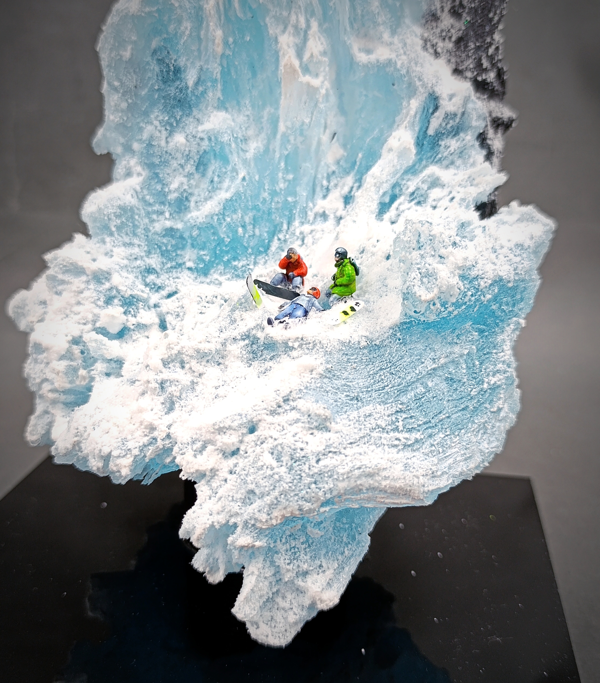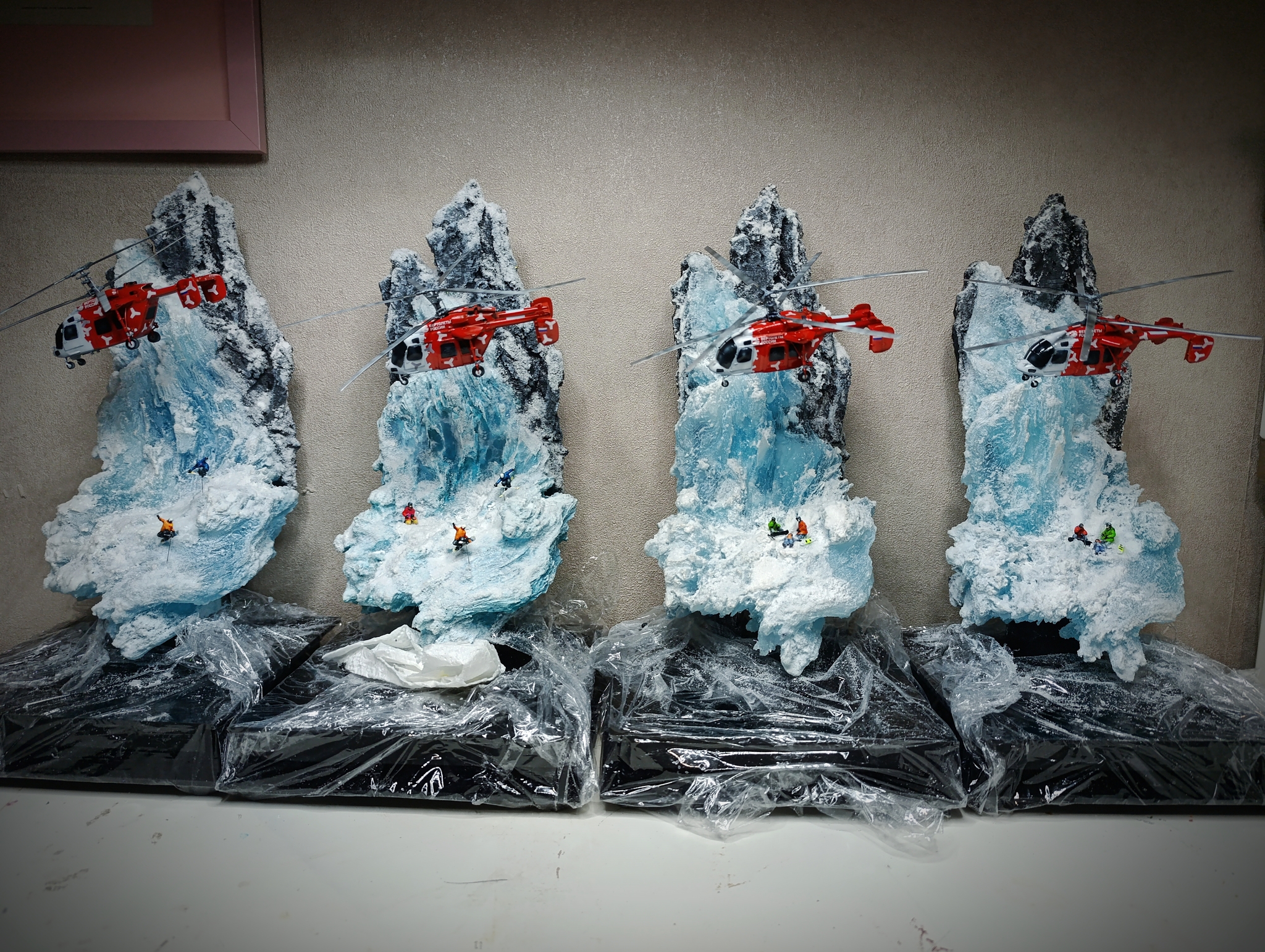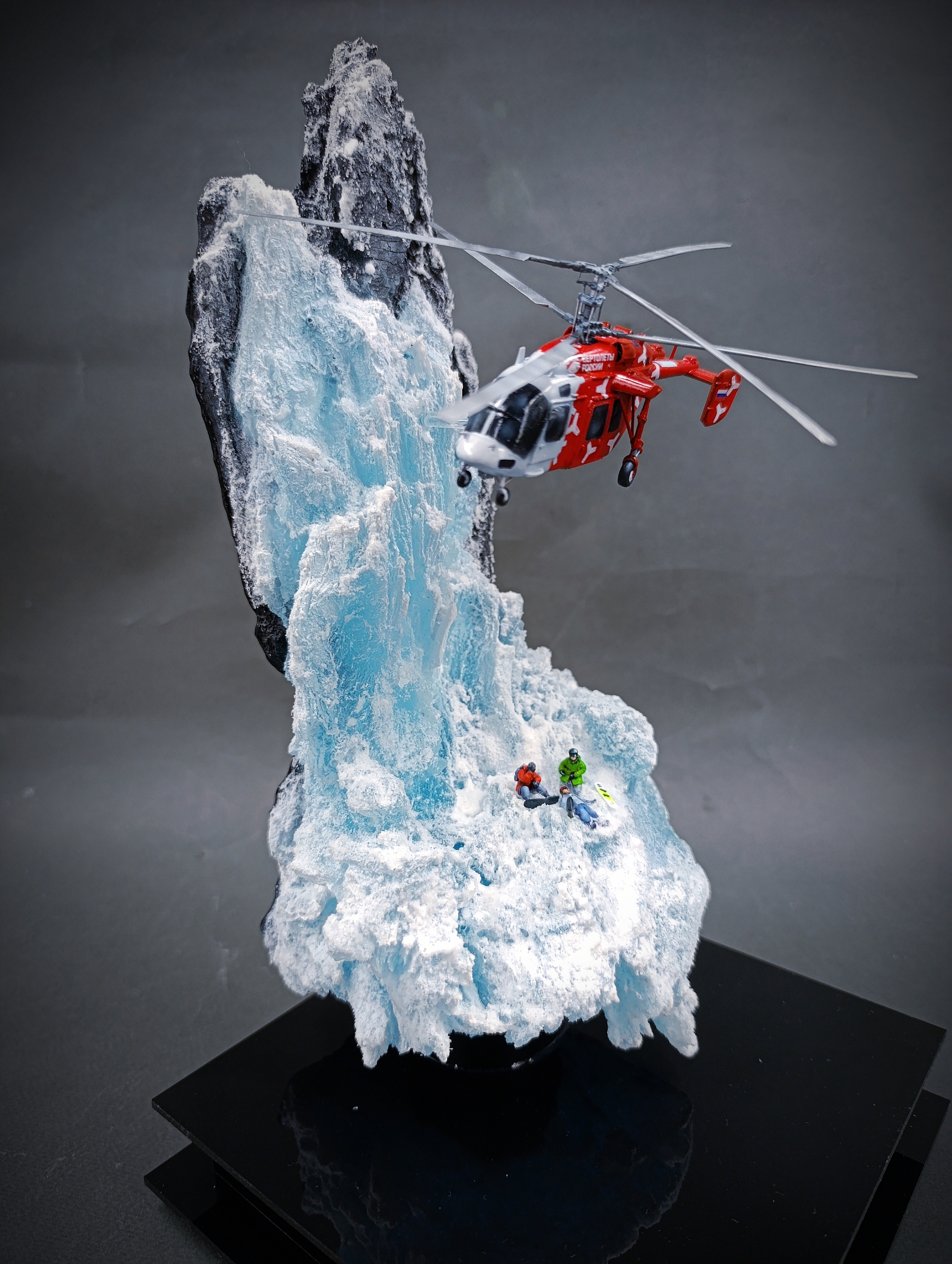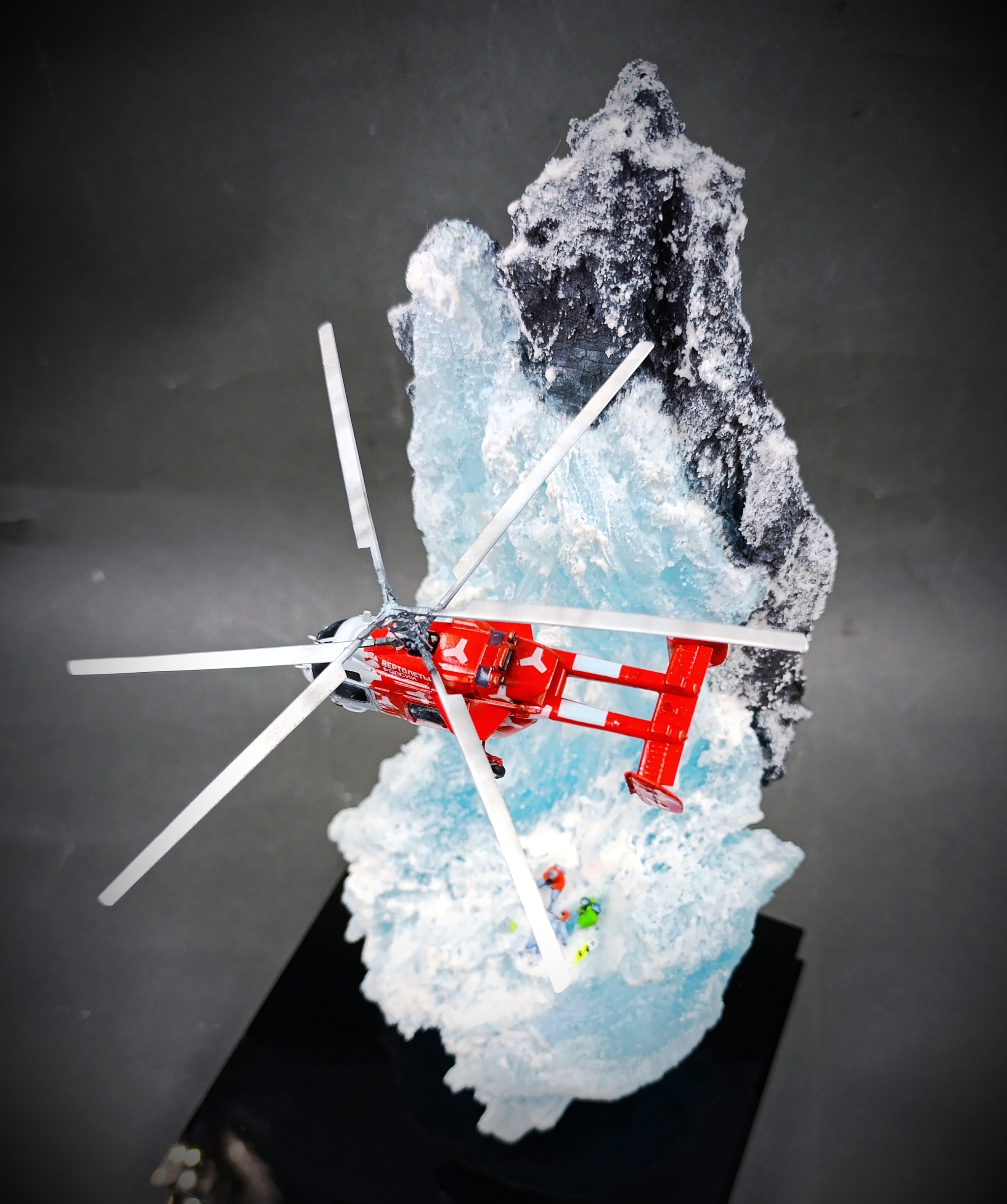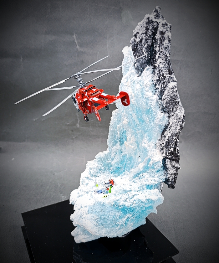 Модель вертолета разработали в 3d, напечатали. Масштаб 1-144 .Кручу его в руках , смотрю .Приятно посмотреть, на как удивить заказчика?Поизучал вопрос где эксплуатация проходит таких вертолетов. Горы вот что мне нужно, спасение людей!И вот что вышло . В горах ледник, снег и трагедия сноубордиста.