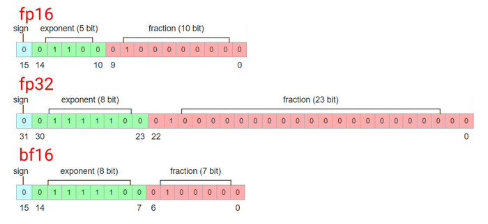 bf16 - это попытка и рыбку съесть и косточки продать: места нужно как для fp16, но точность больше. Не все видеокарты поддерживают, не везде применяется, поэтому пропустим.